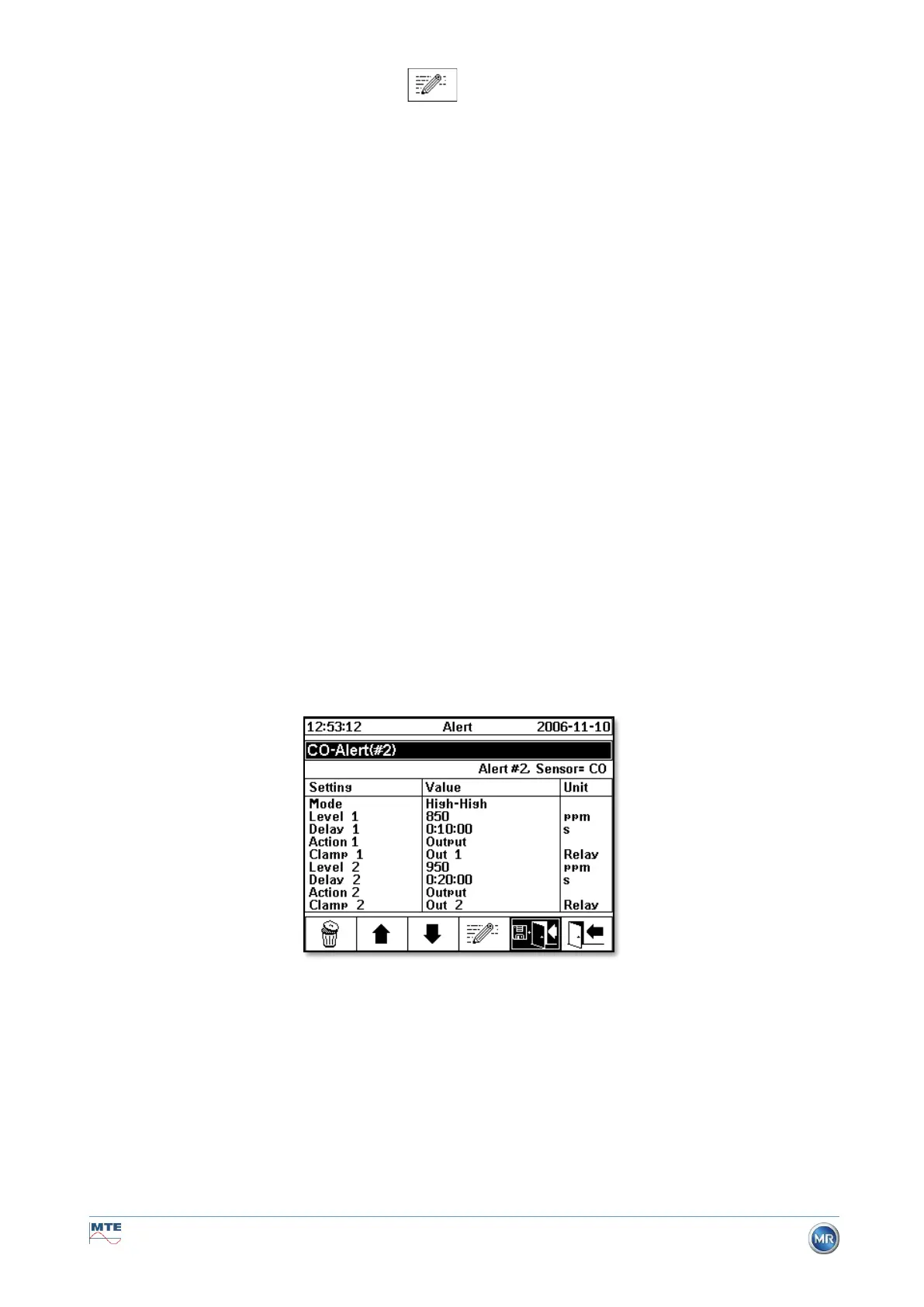 The alarm settings can be edited using the key, the arrow keys and the alphanumeric keypad.