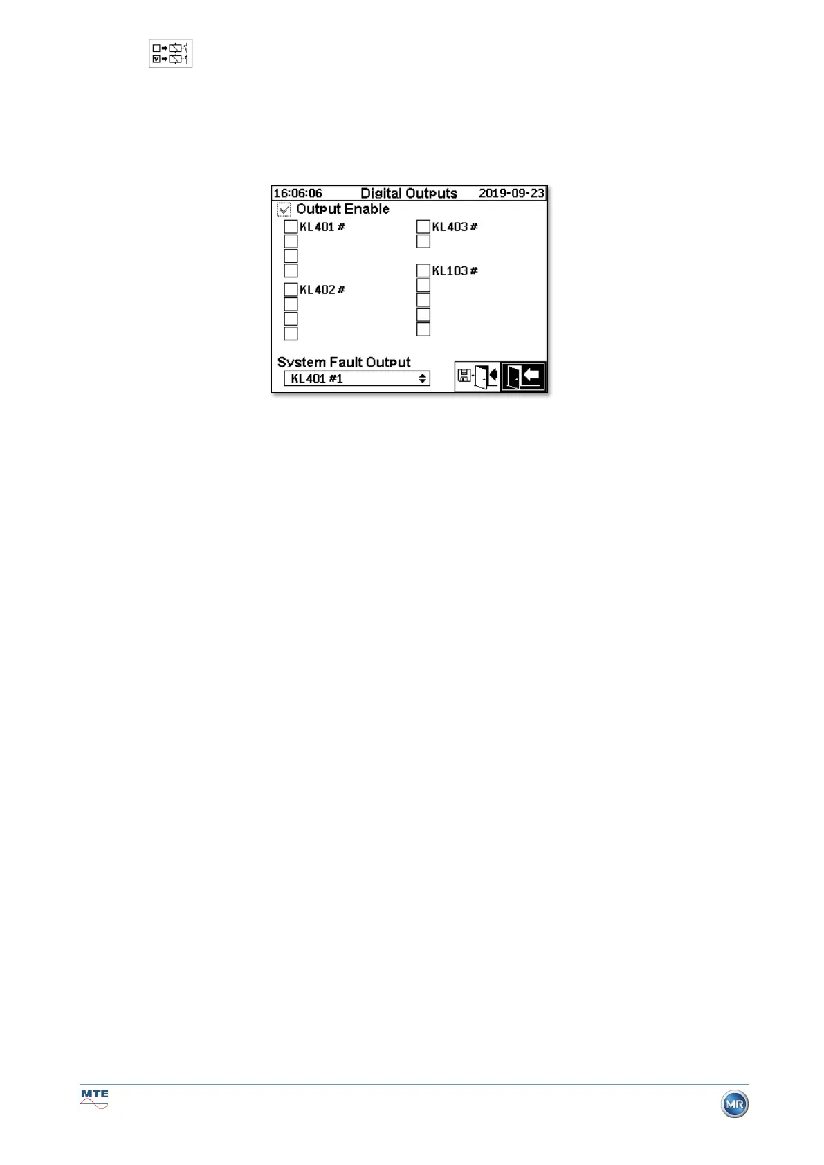 The system fault can be individually adjusted to one of the 15 digital outputs (standard: relay output 1).