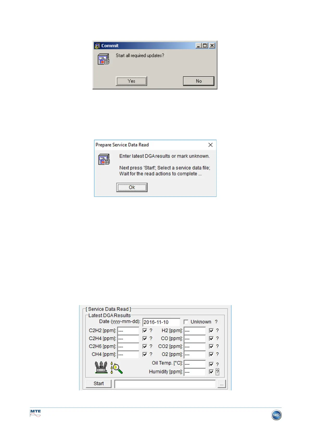 In order to read-out the service data using the MSET DGA Service Tool, you must first enter the results
