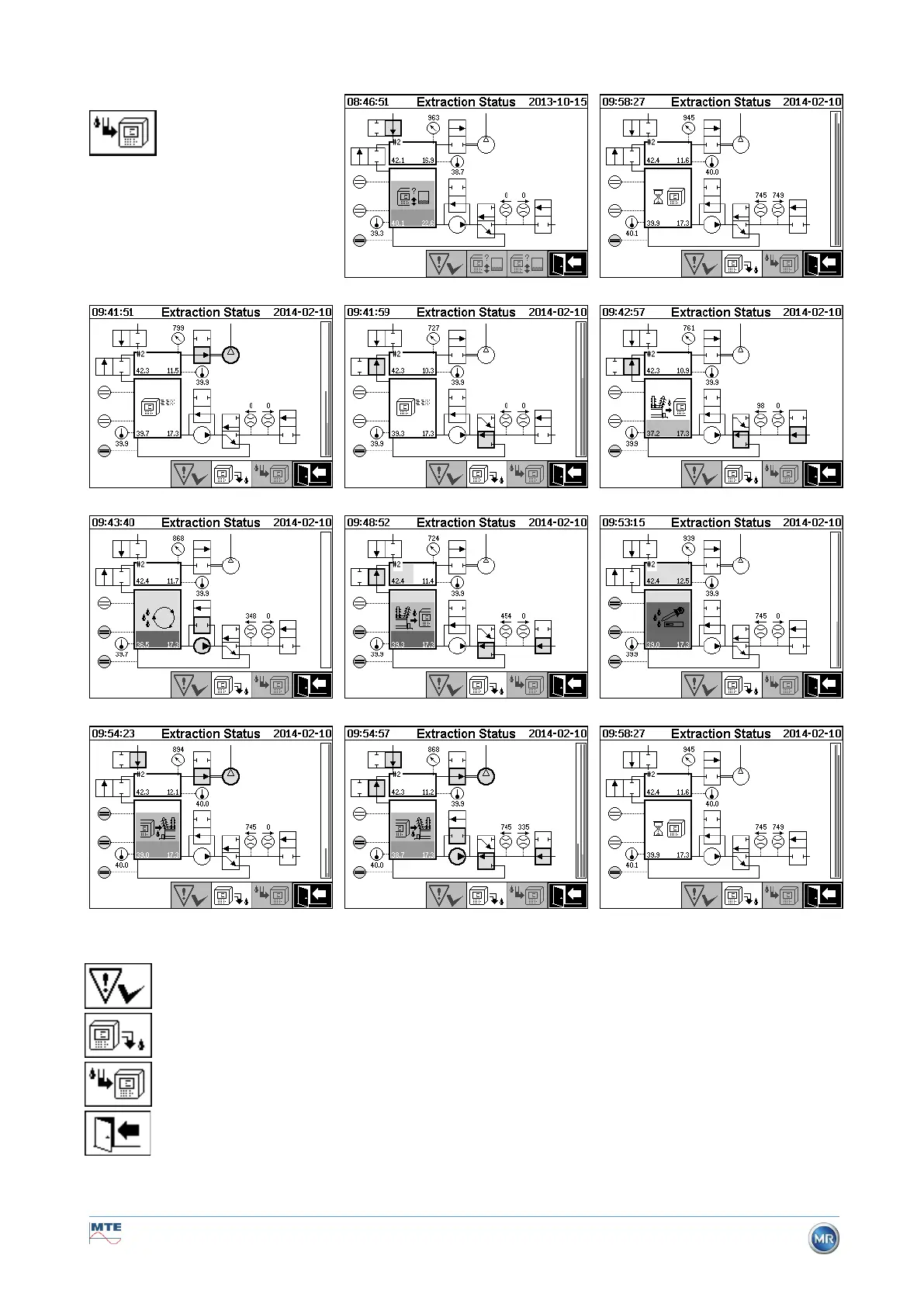 The following functions are available in the extraction status menu: