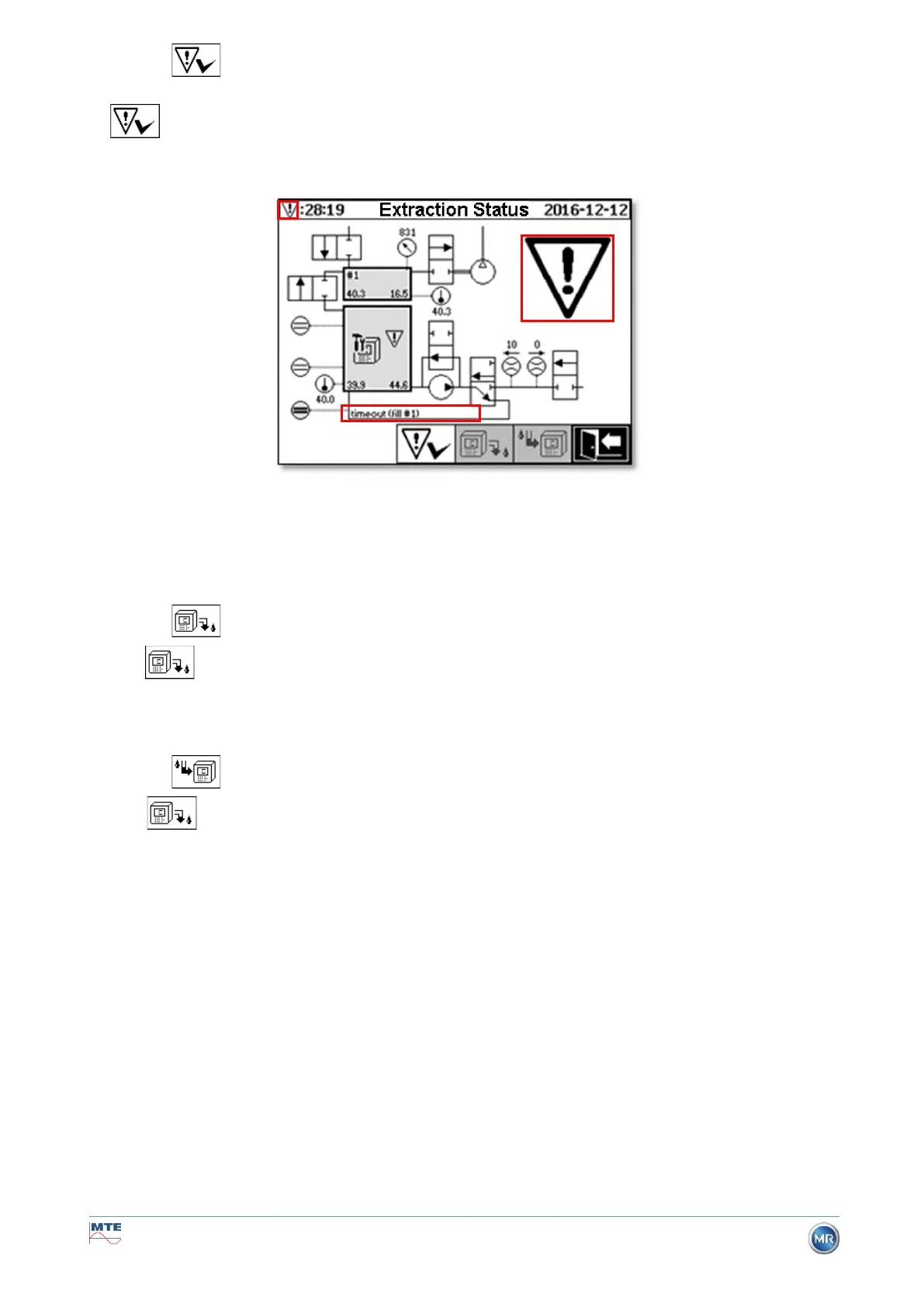 The fault is visualised with an additional information line (below the extraction chamber) and warning