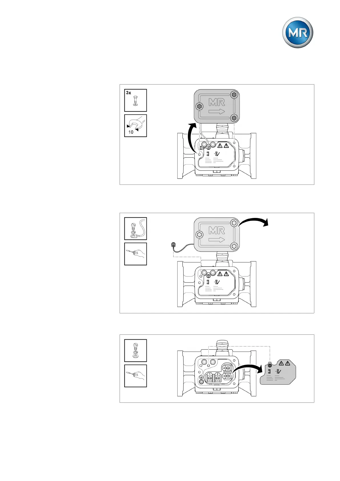 3. Loosen the three screws on the terminal box cover and lift off the terminal
