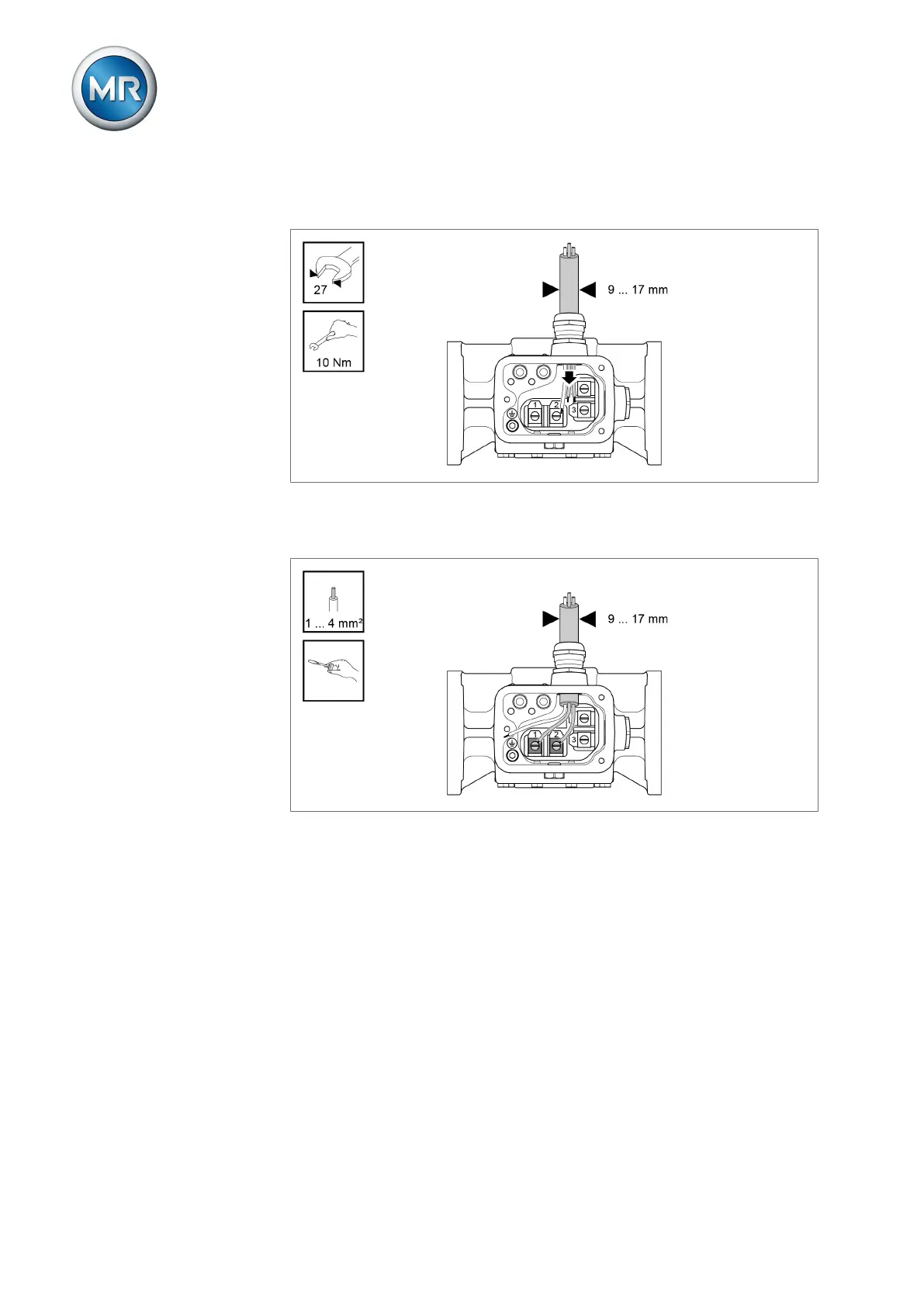 7. Connect the electric cables to the connection terminals in accordance with