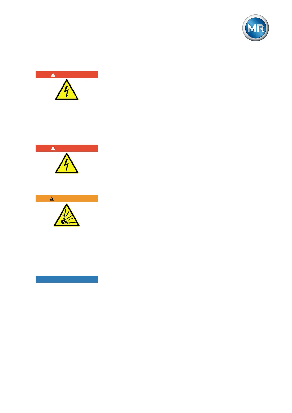 ► Do not operate any electrical devices (e.g. risk of sparks from impact