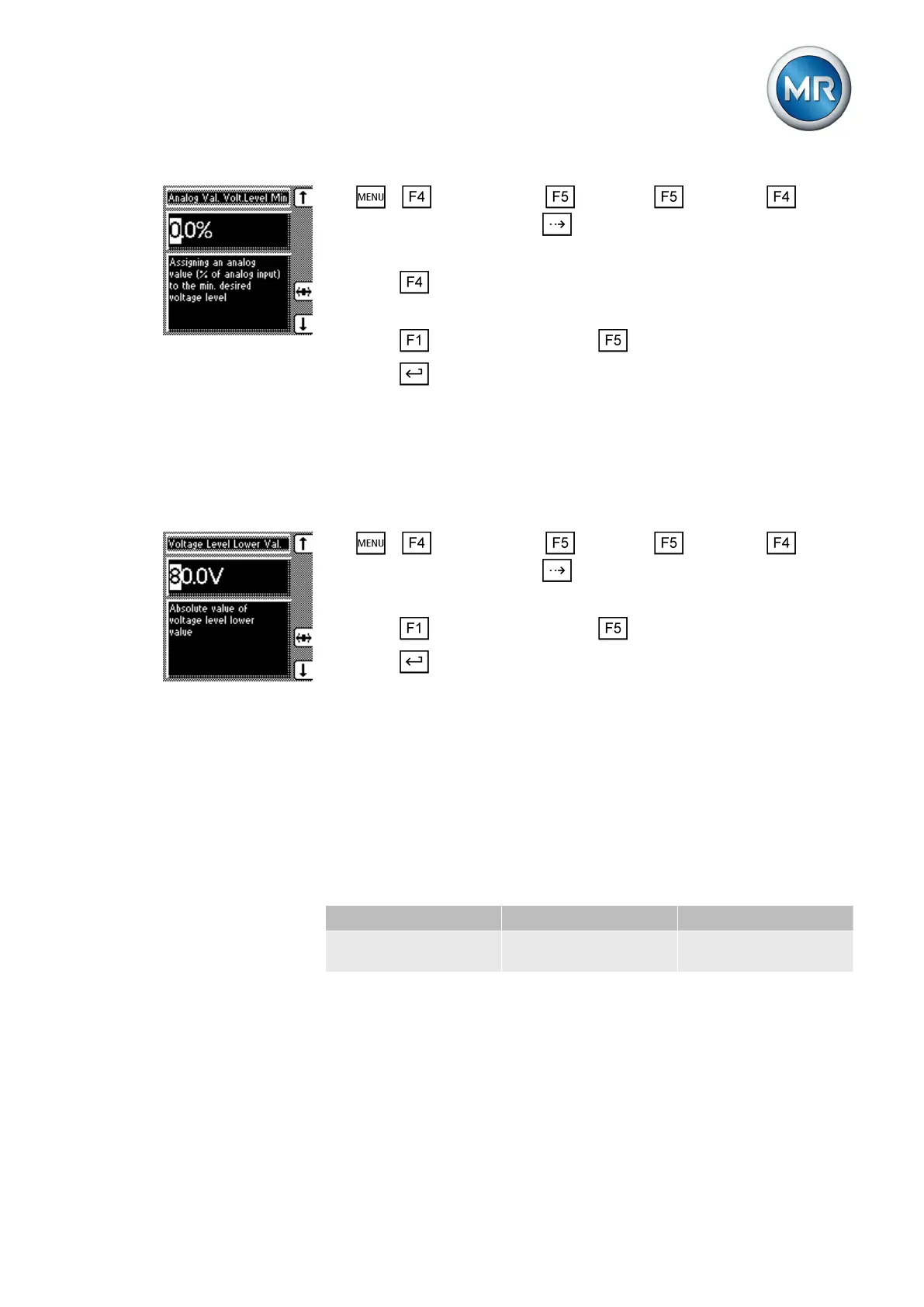 Table 27: Example of configuration for the analog input (desired value transmitter