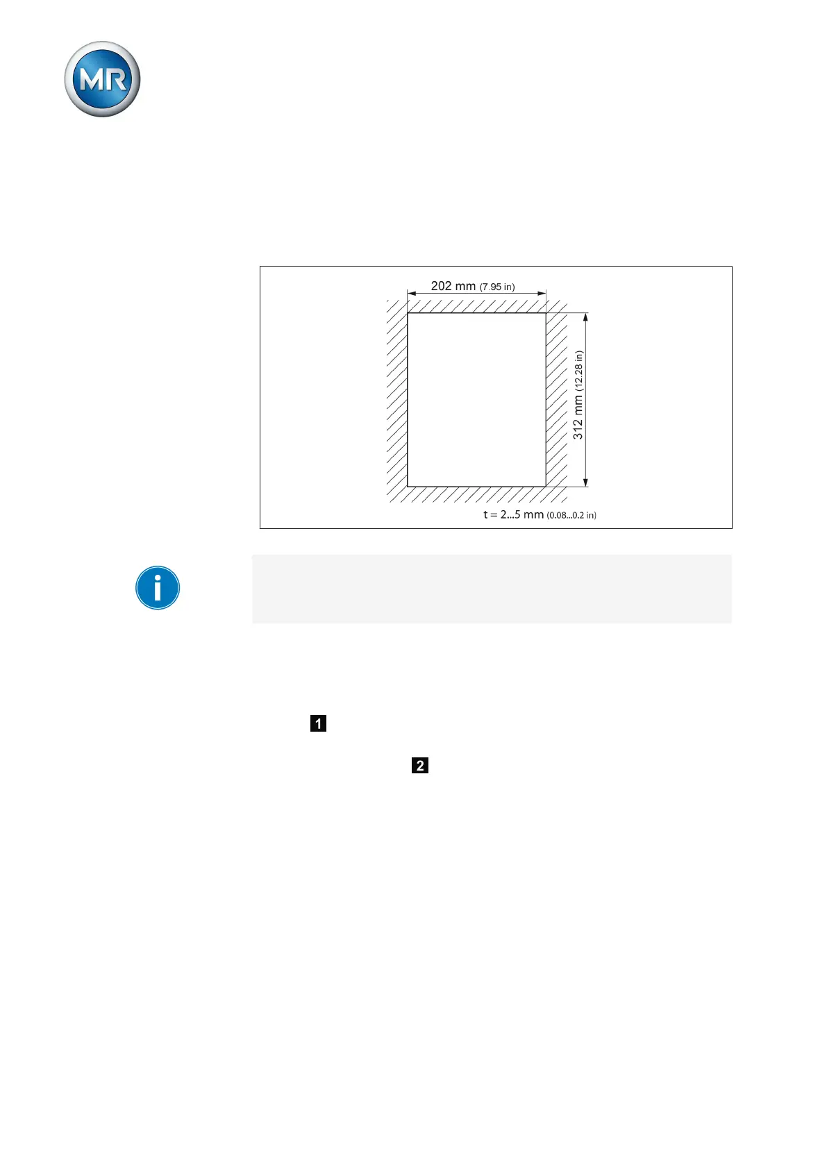A wall thickness of 2...5 mm (0.08...0.2 in) is needed for secure device fix-