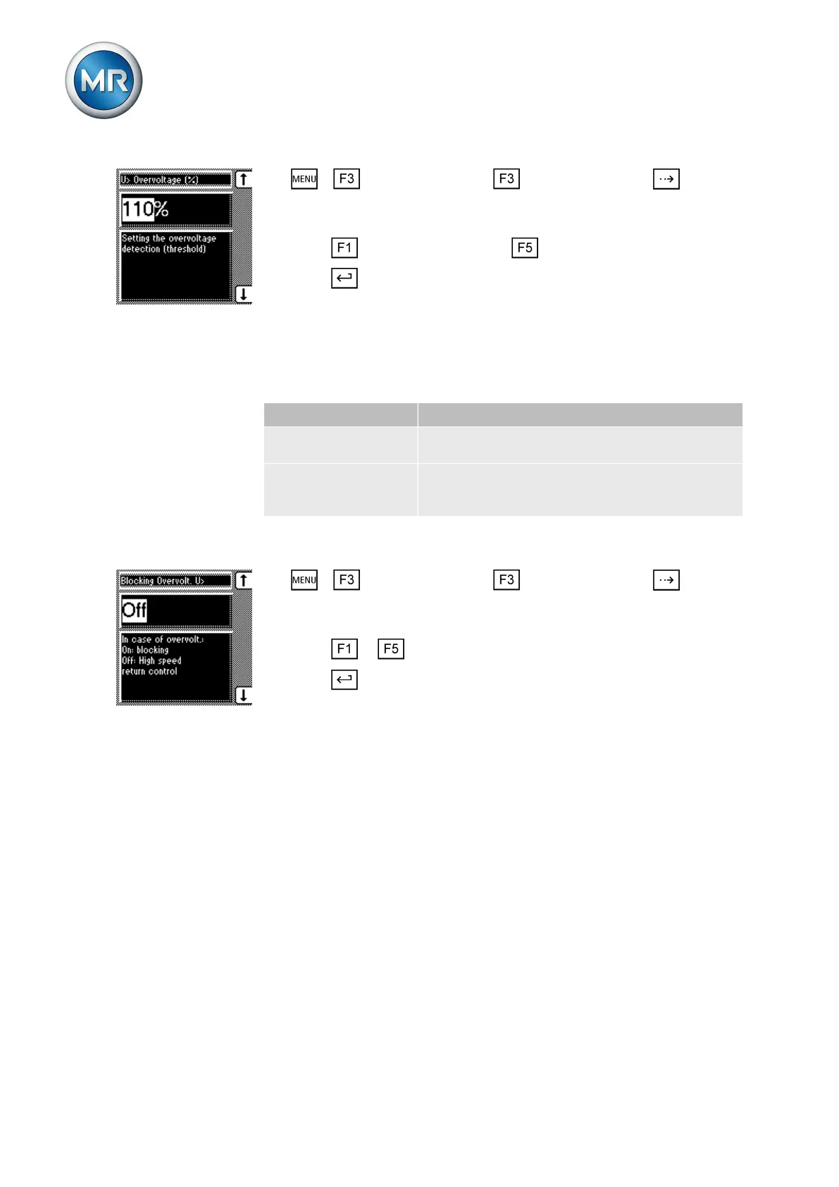 To set the device's response to overvoltage, proceed as follows: