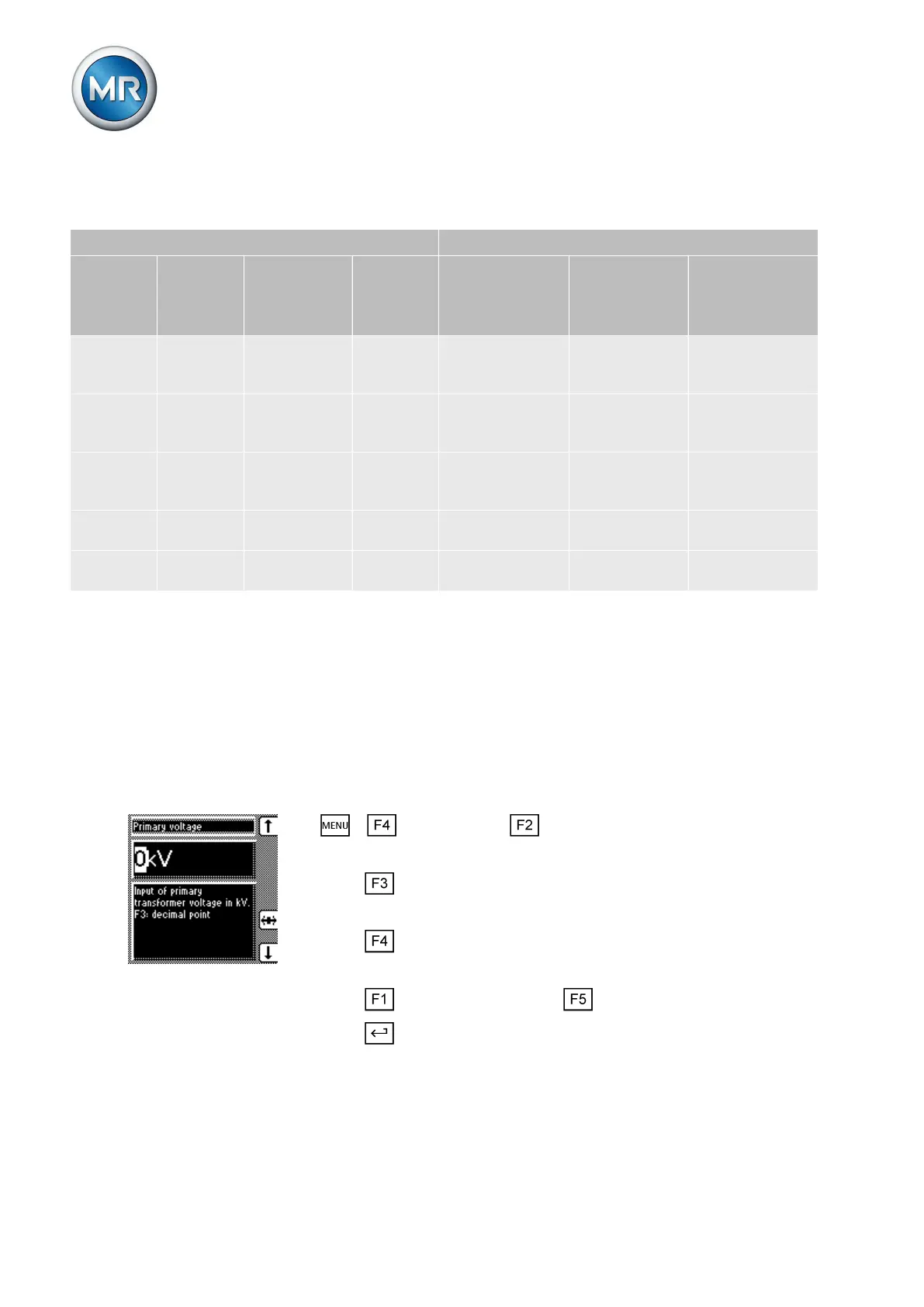 If a setting of 0 kV is chosen, no primary transformer voltage is displayed.