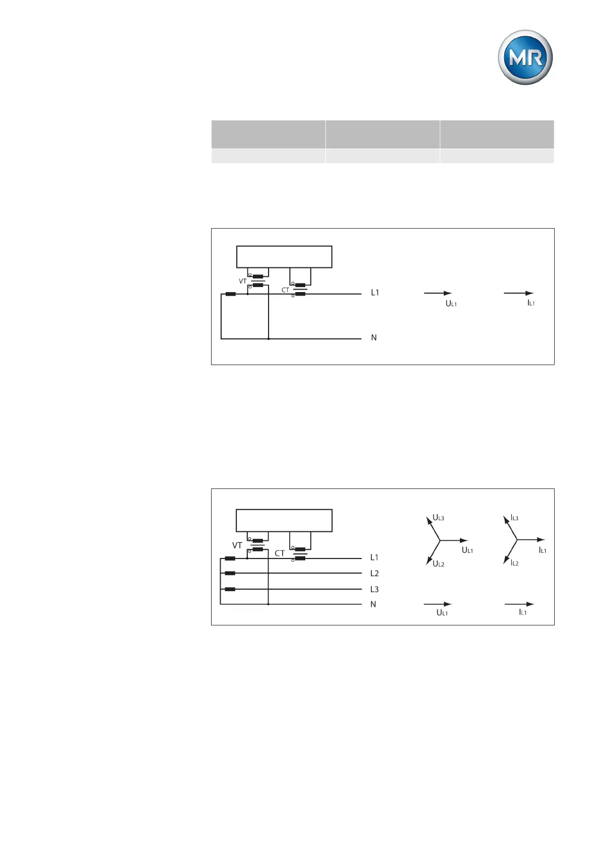 ▪ The voltage transformer VT is connected to the outer conductors L1 and