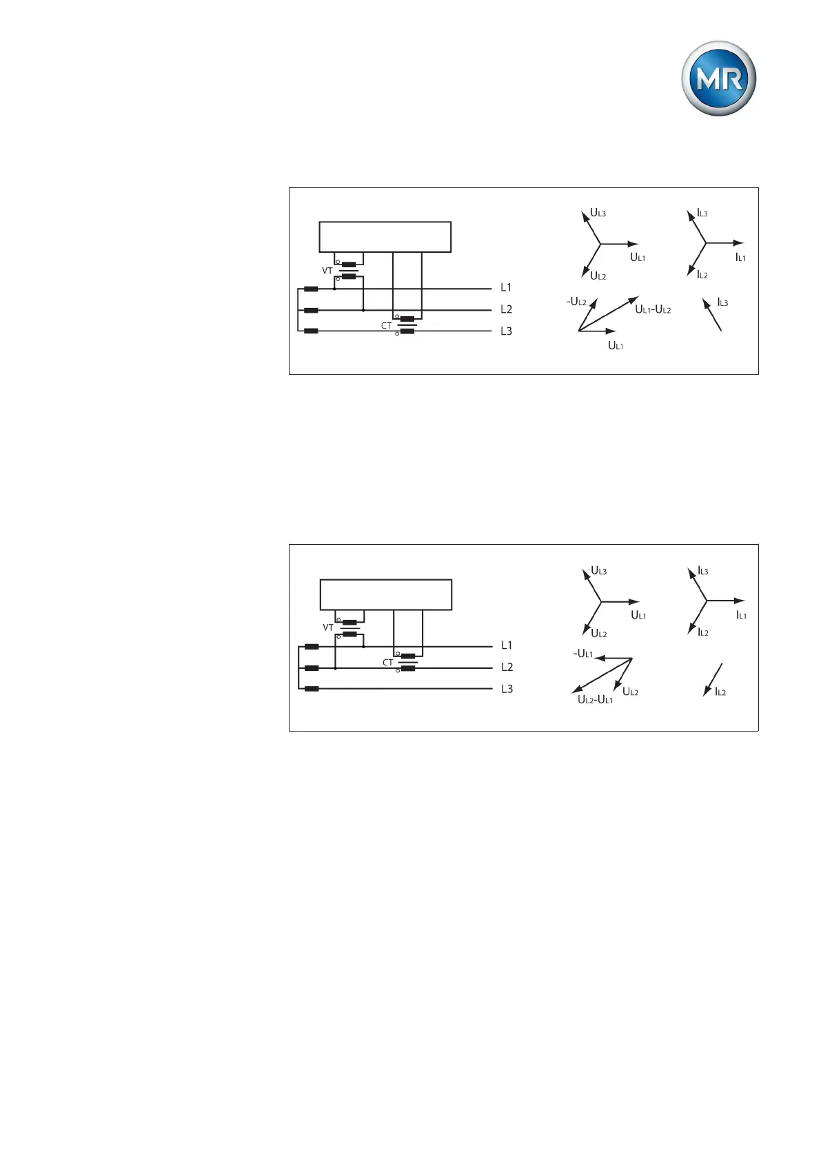▪ The voltage transformer VT is connected to the outer conductors L1 and