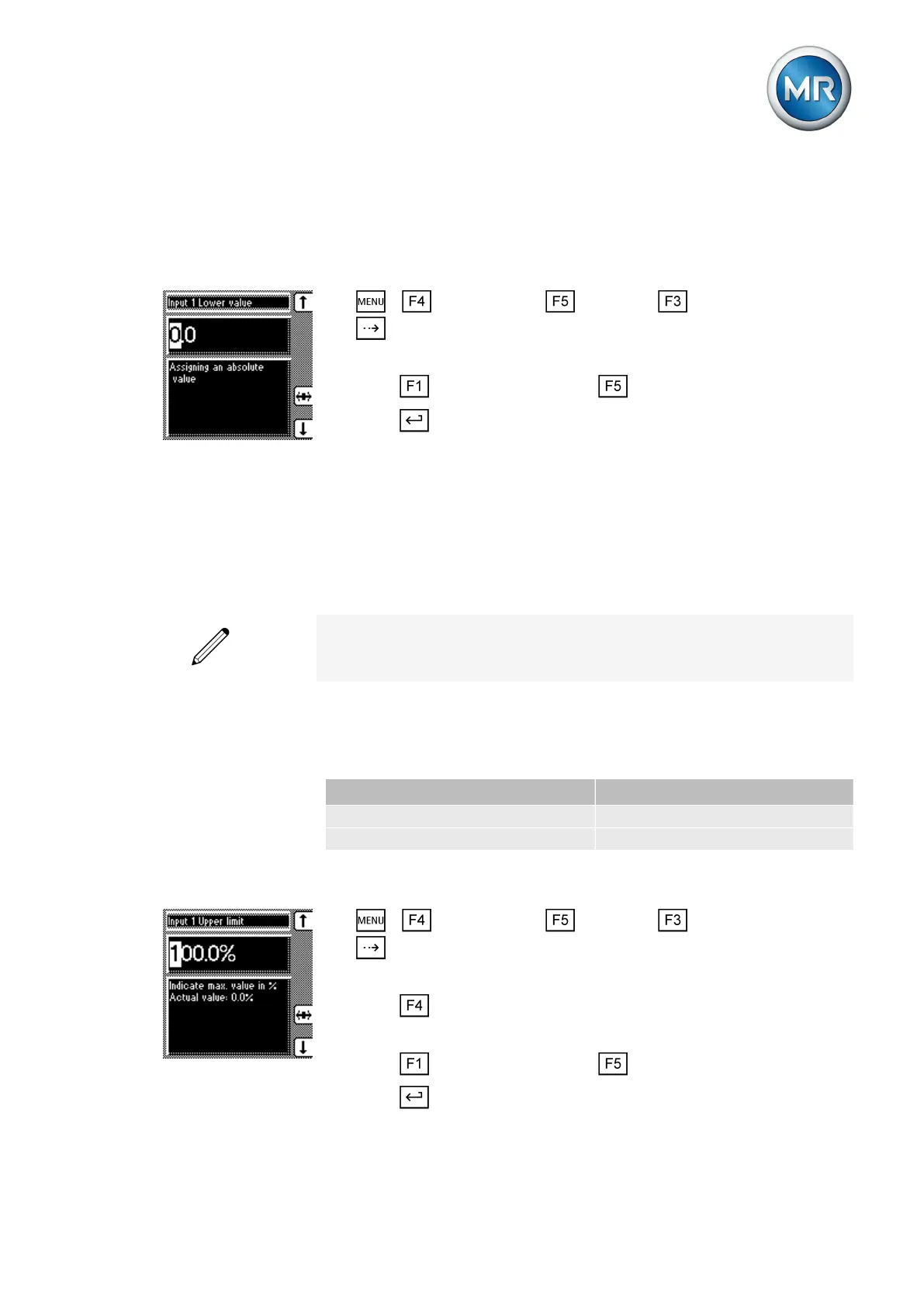 4...20 mA, you must set 100 % for the "Input 1 upper limit" parameter and