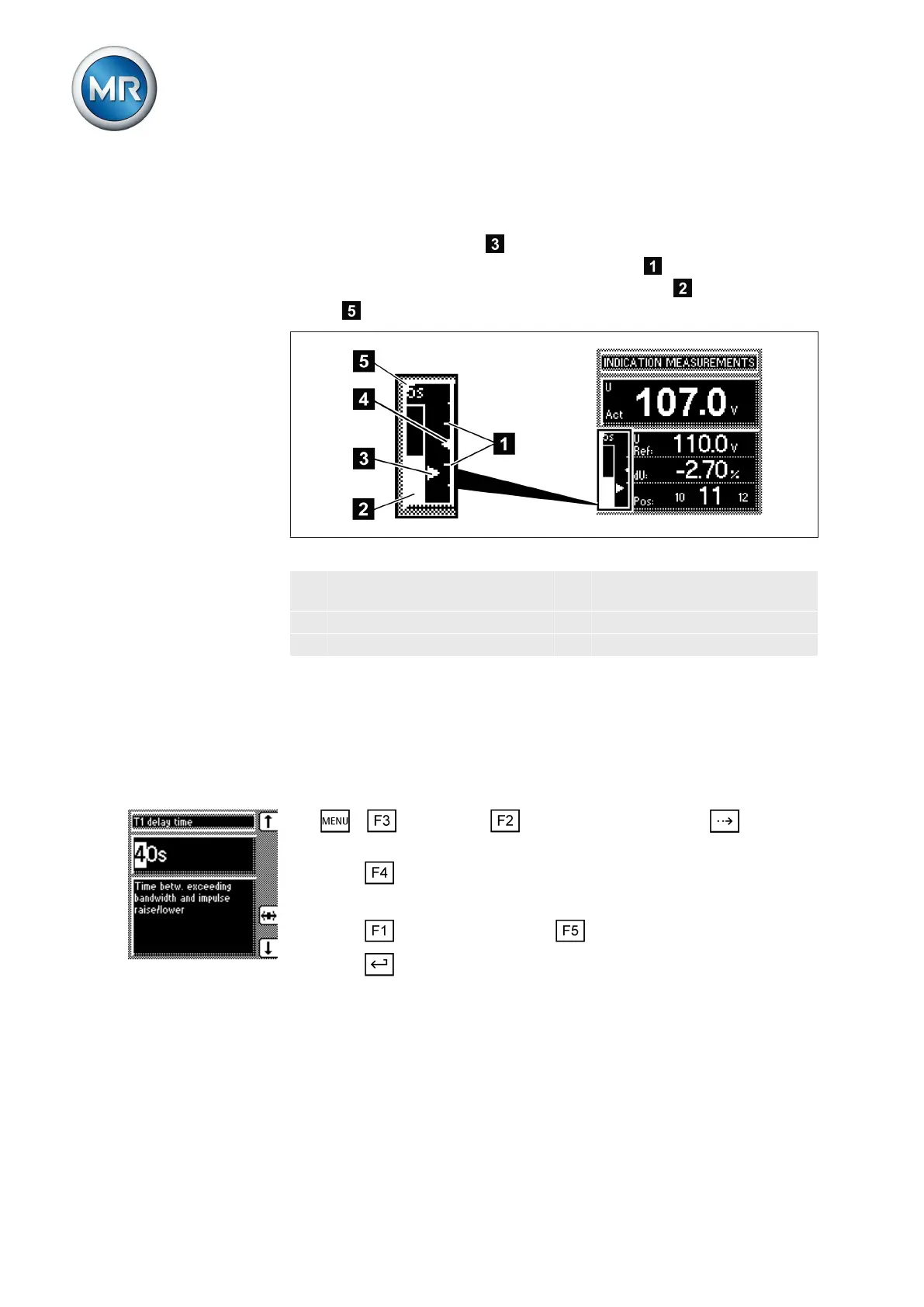 2 Time bar for delay time T1 5 Remaining delay time T1