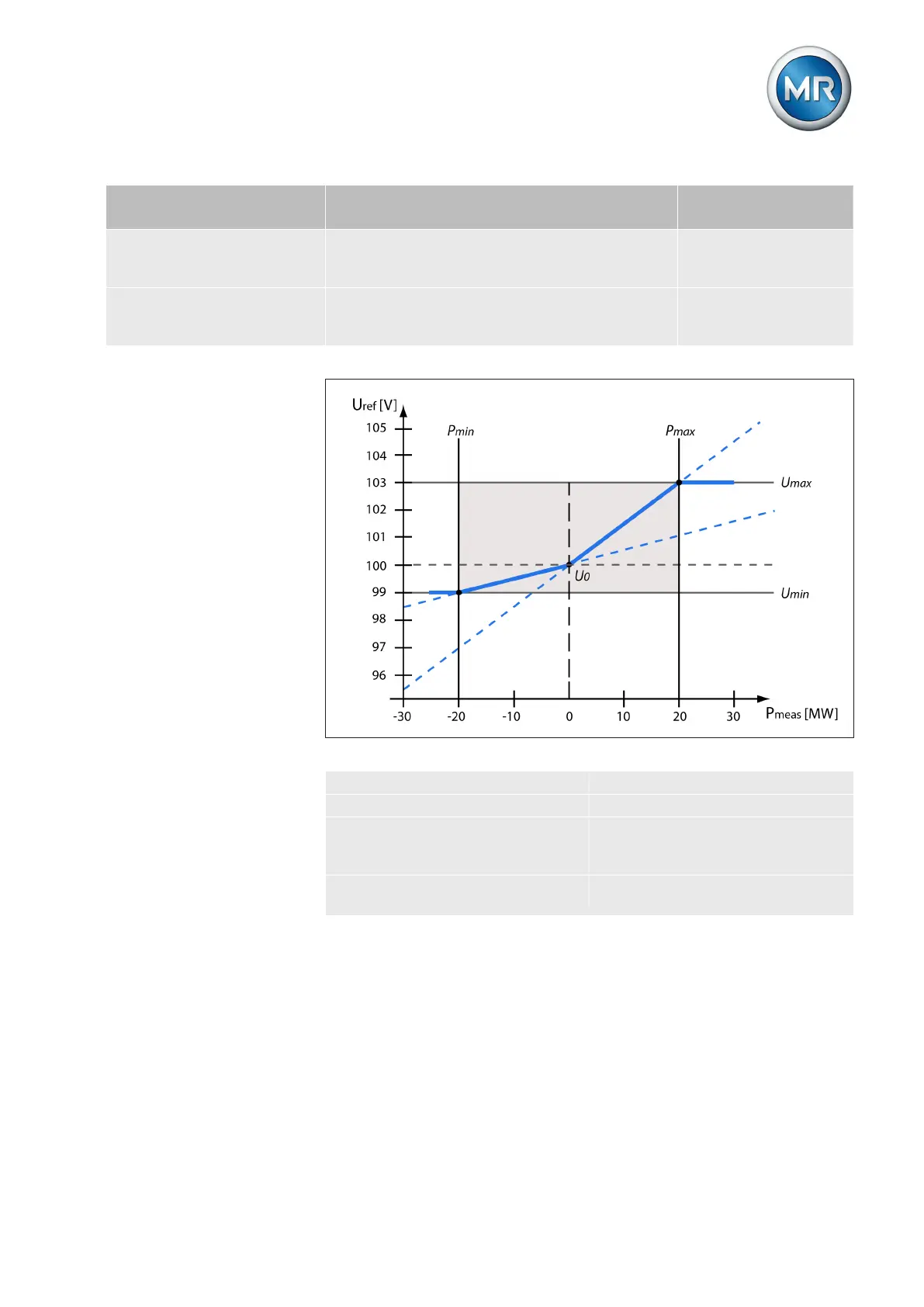 Table 13: Parameters to be set for active power-dependent adjustment of desired voltage value