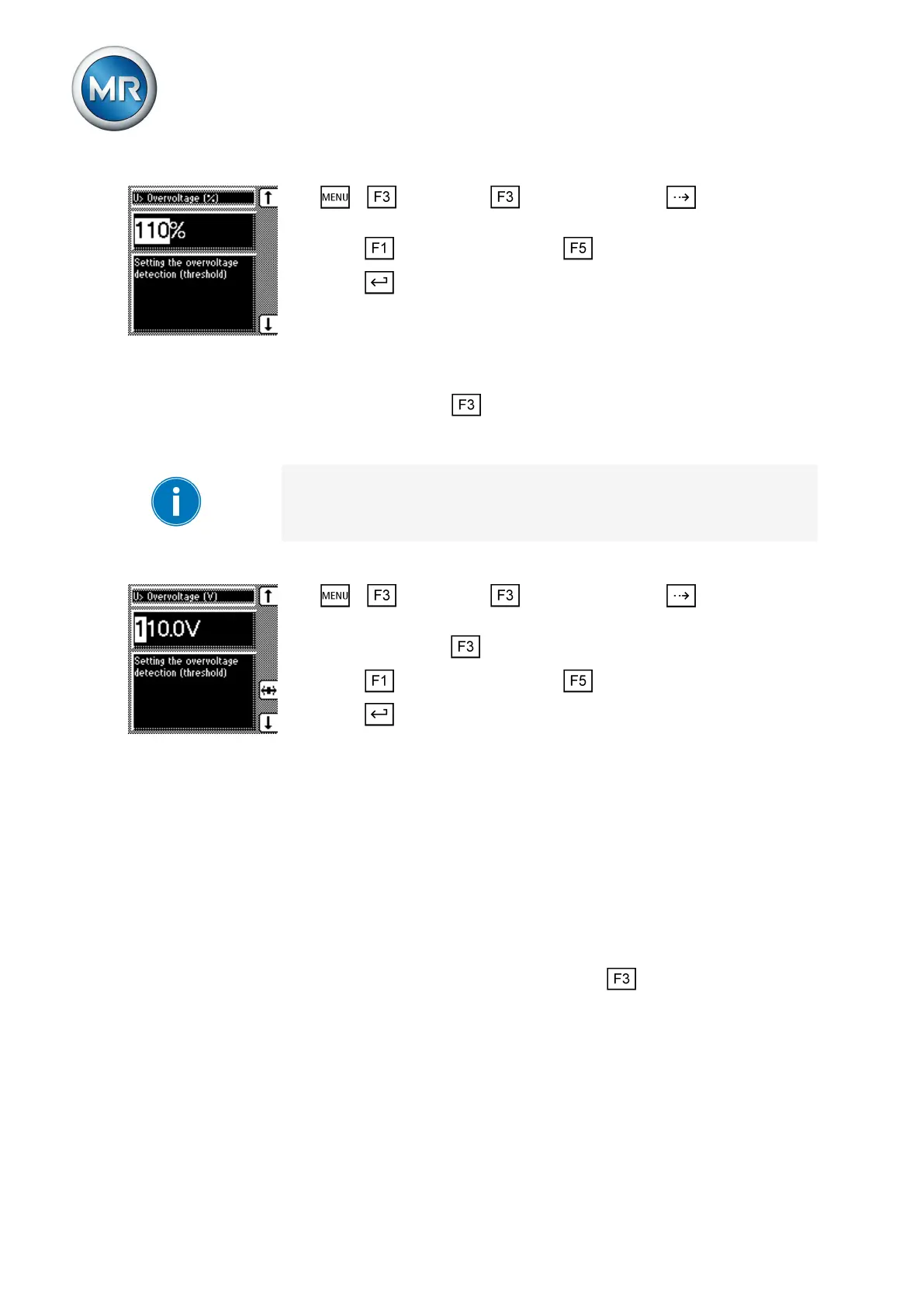 To set the absolute limit value for overvoltage limit V>, proceed as follows:
