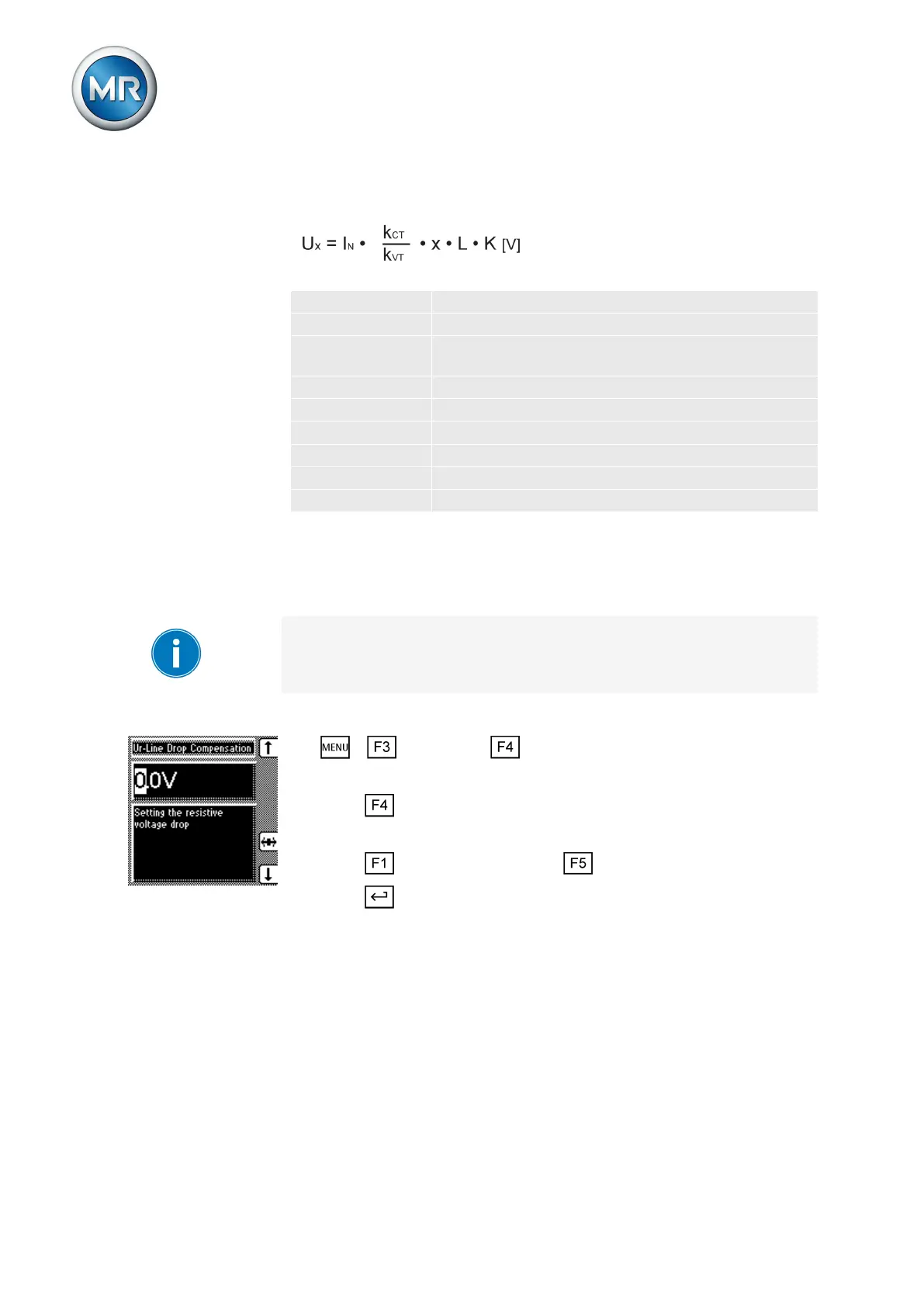 To set the ohmic voltage drop Vr, proceed as follows: