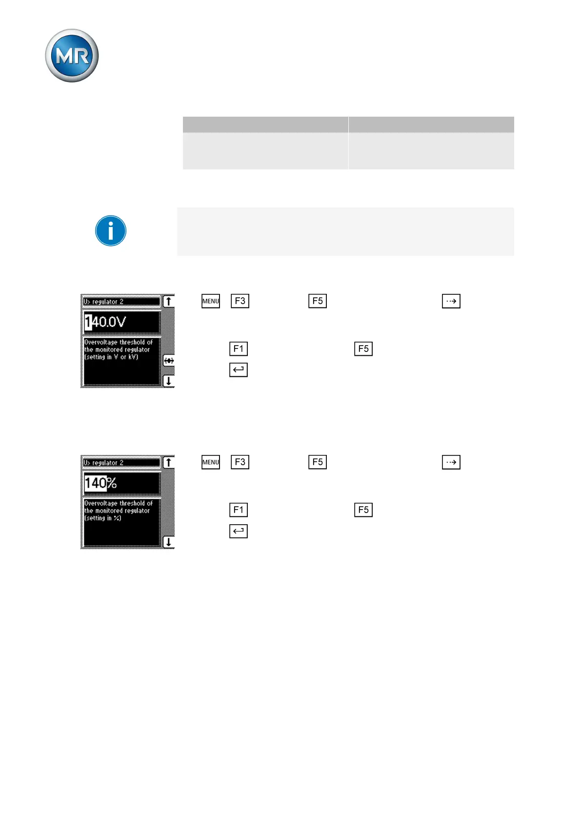 ð The overvoltage limit value is set as an absolute value.