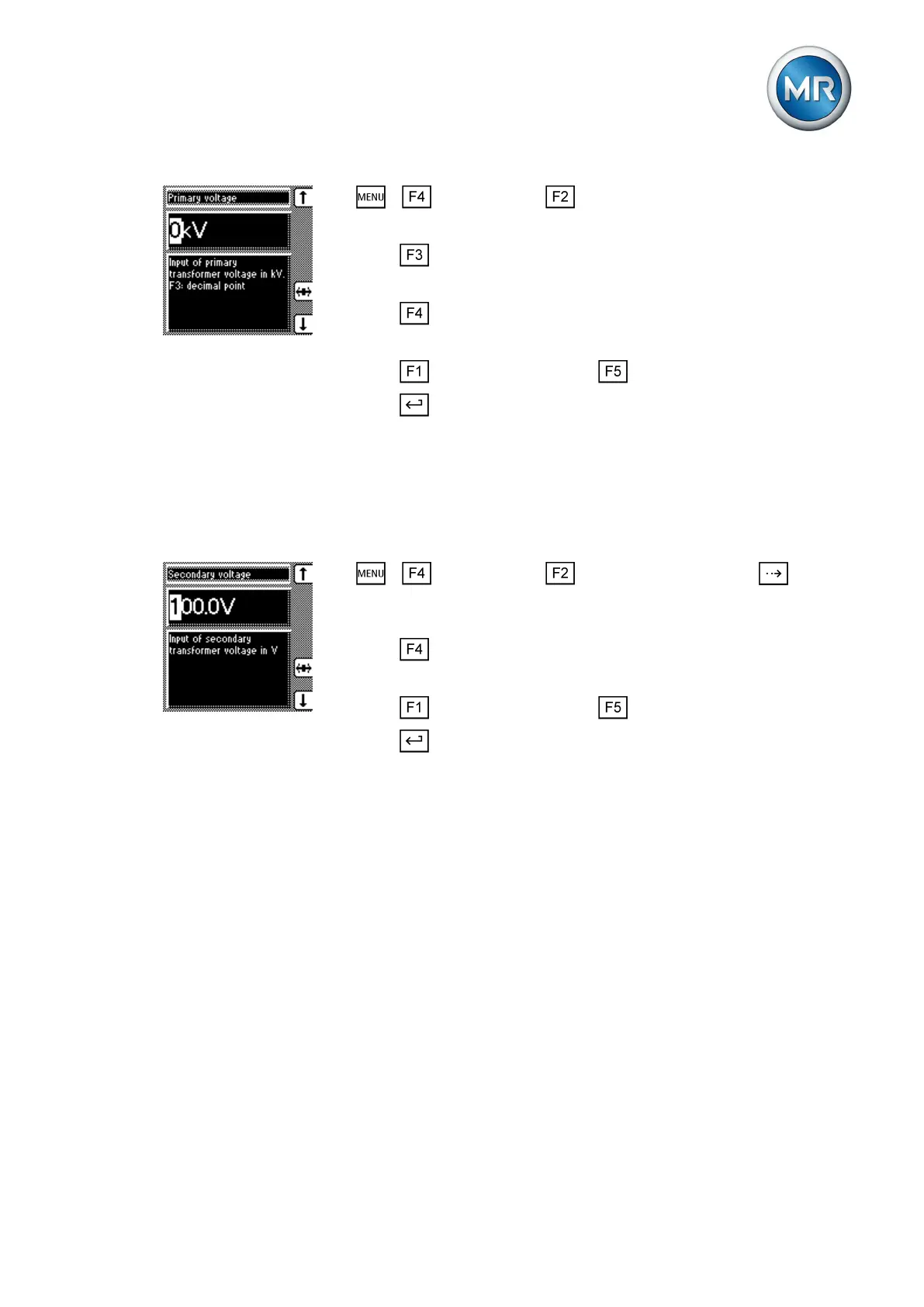 To set the secondary transformer voltage, proceed as follows: