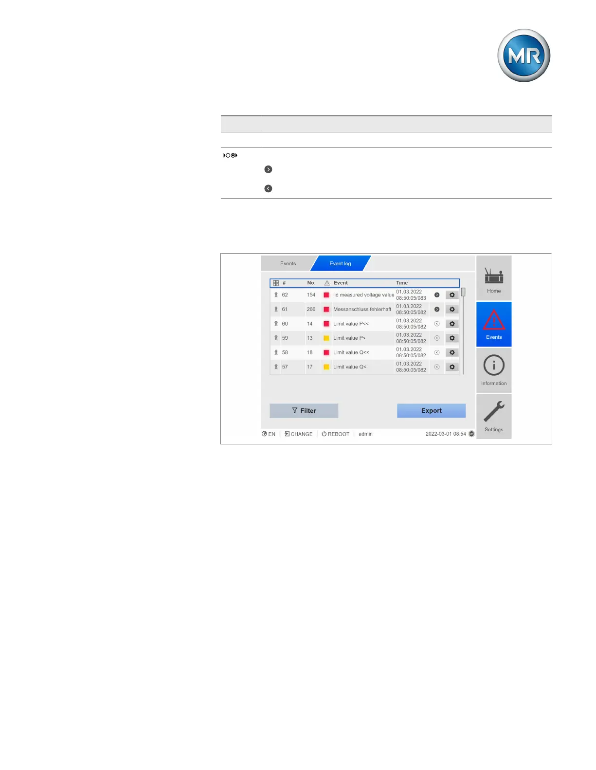 You can export the event memory entries currently displayed as a csv file. If