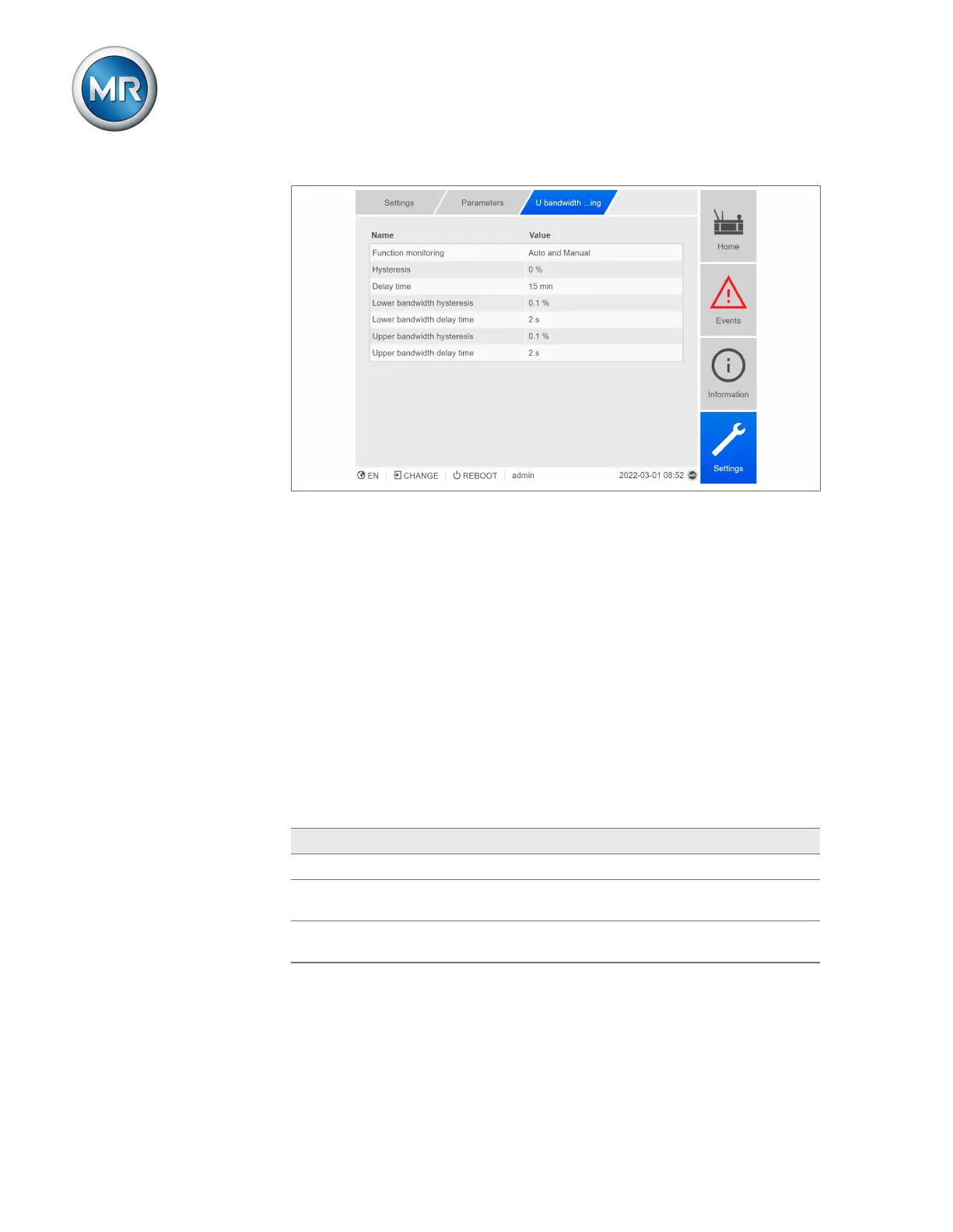 1. Go to Settings > Parameters > On-load tap-changer regulator > U