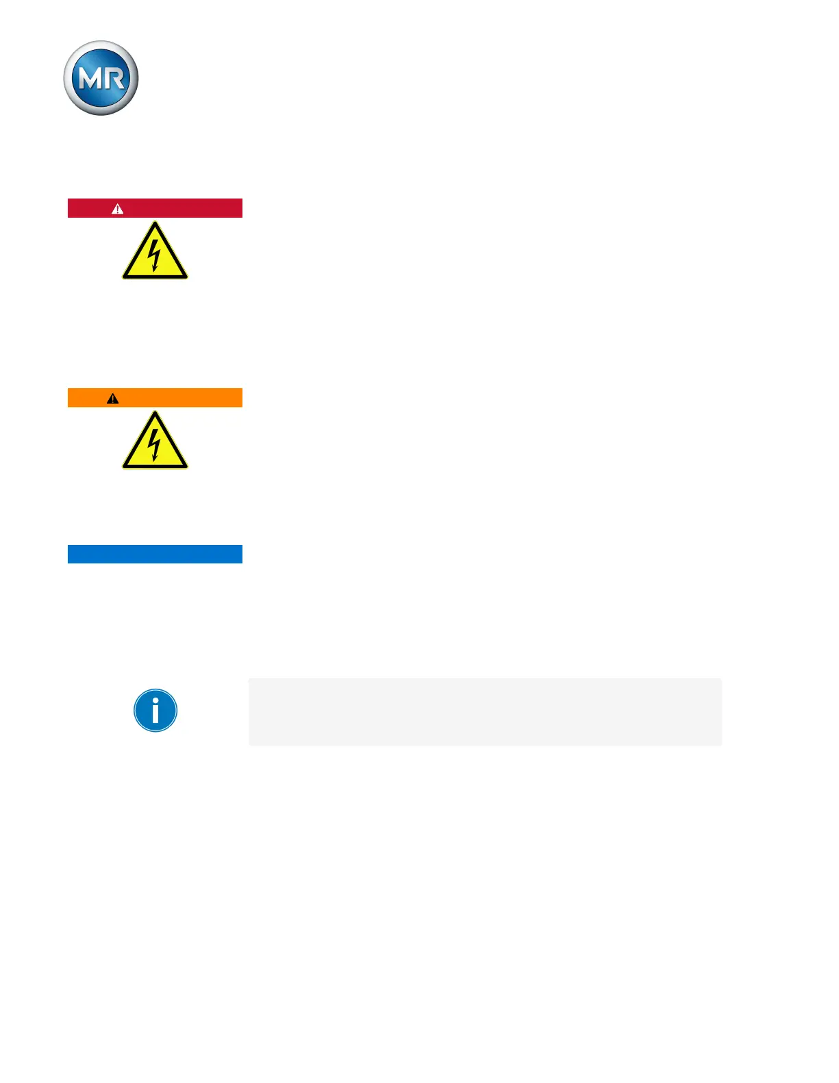 Risk of fatal injury due to electrical voltage. Always observe the following