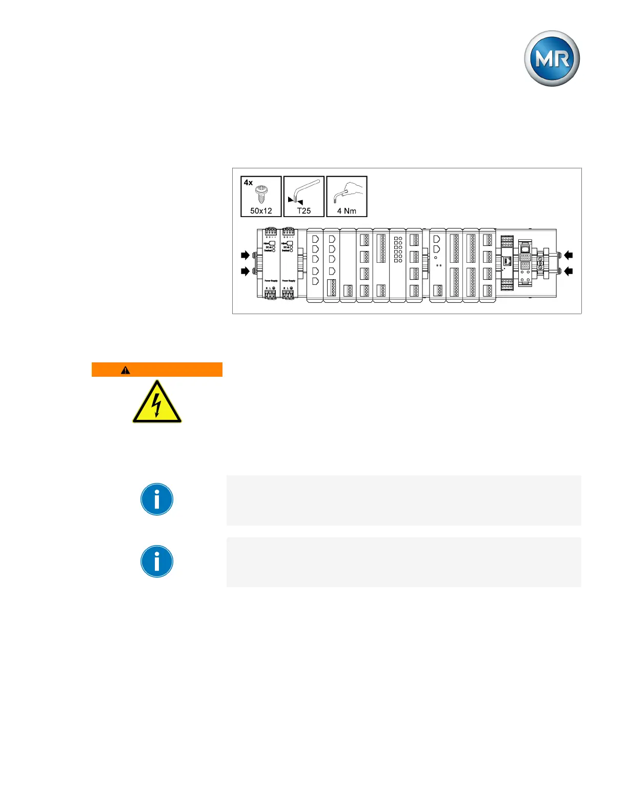 ► Ensure that the cap rail is connected securely to the protective ground via