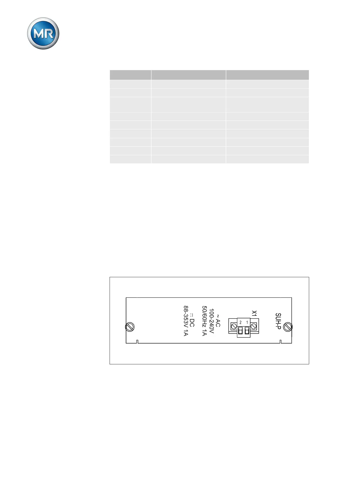 The wide range power supply (SU card) supplies the device with power. De-