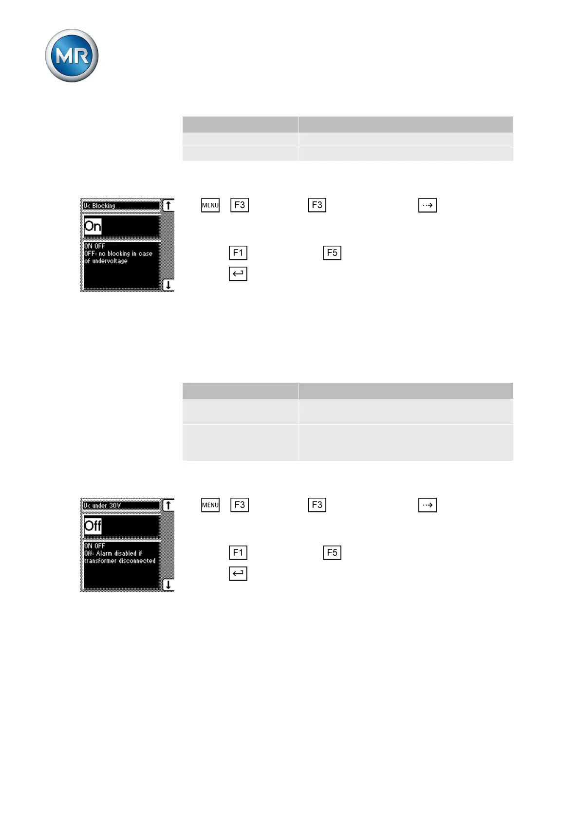 To activate/deactivate the undervoltage blocking, proceed as follows: