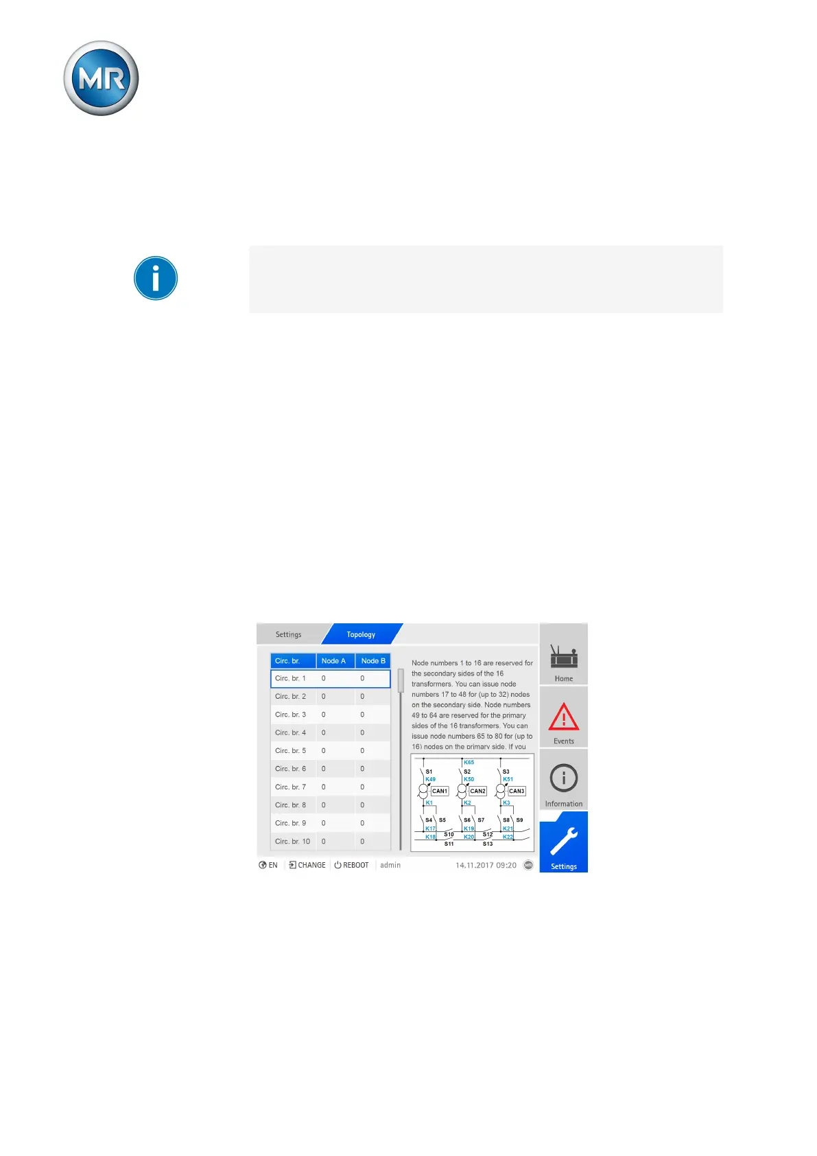 ▪ You can use nodes 17...48 to configure the connection of the circuit