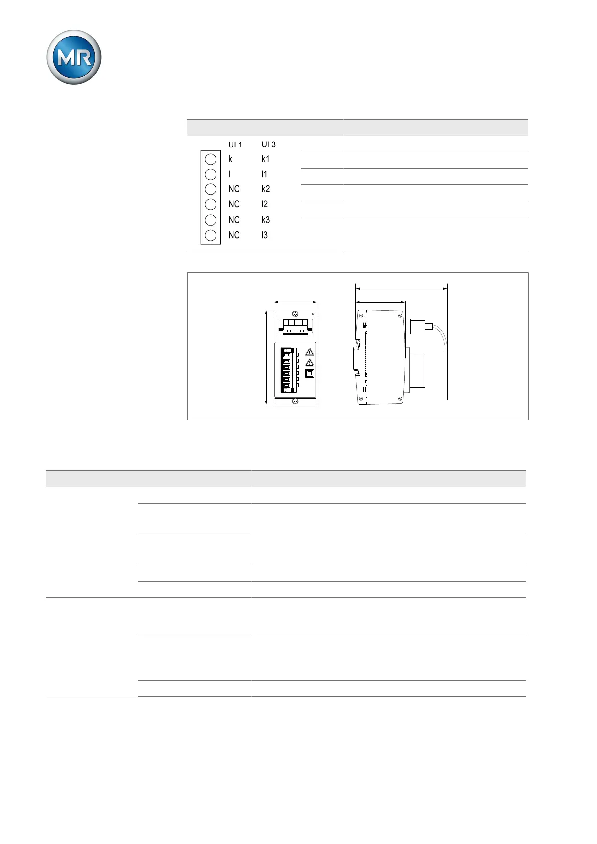 k, k1 Current input for phase L (UI1) or L1 (UI3)