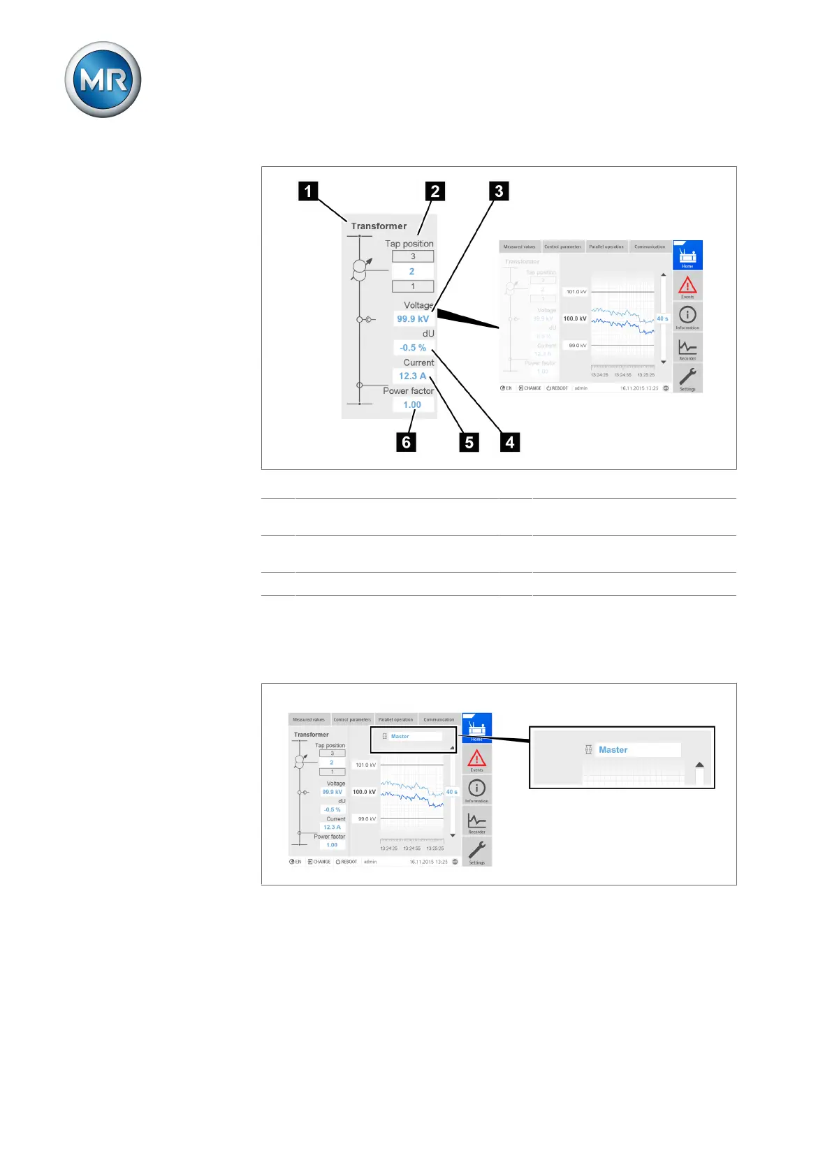 1 Transformer designation 2 Tap position of the on-load tap-