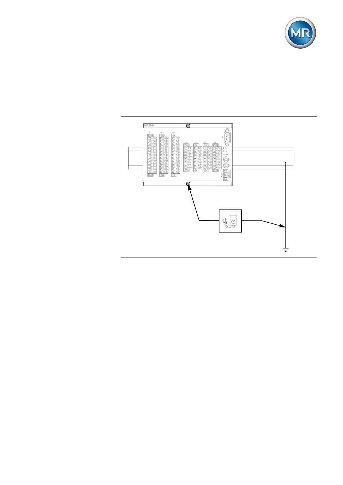 1. Feed the test current at the fixing screw of assembly DIO 28-15 or DIO
