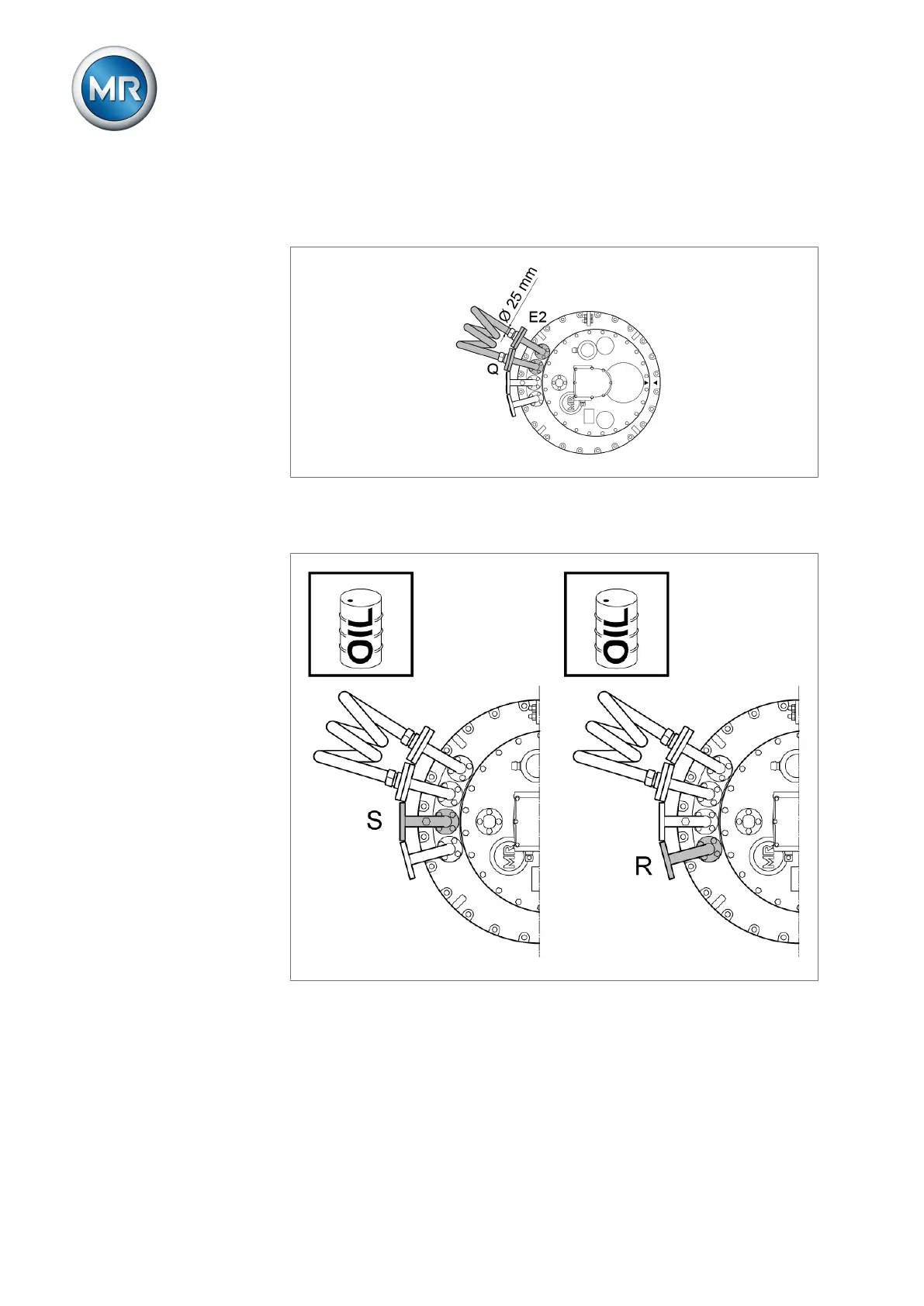 pipe connections R, S or Q to ensure equal pressure in the oil compart-