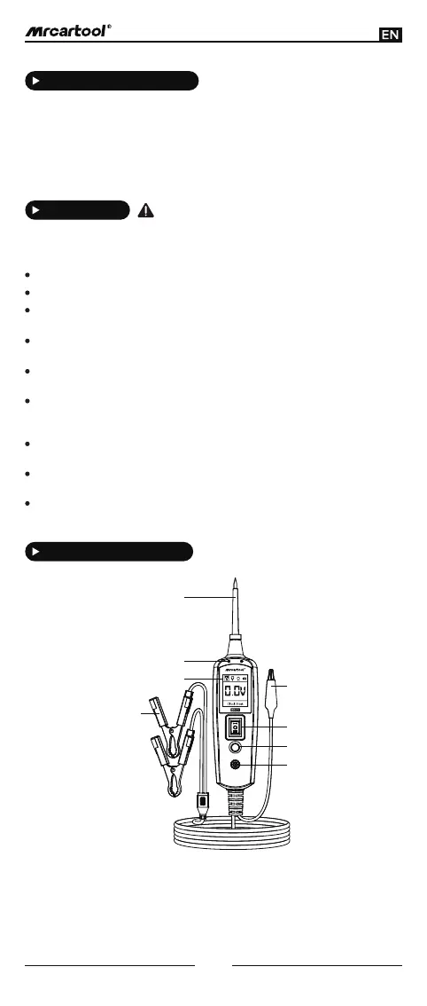 [1] Probe Tip [2] Red / Green Polarity Indicator [3] LCD Display