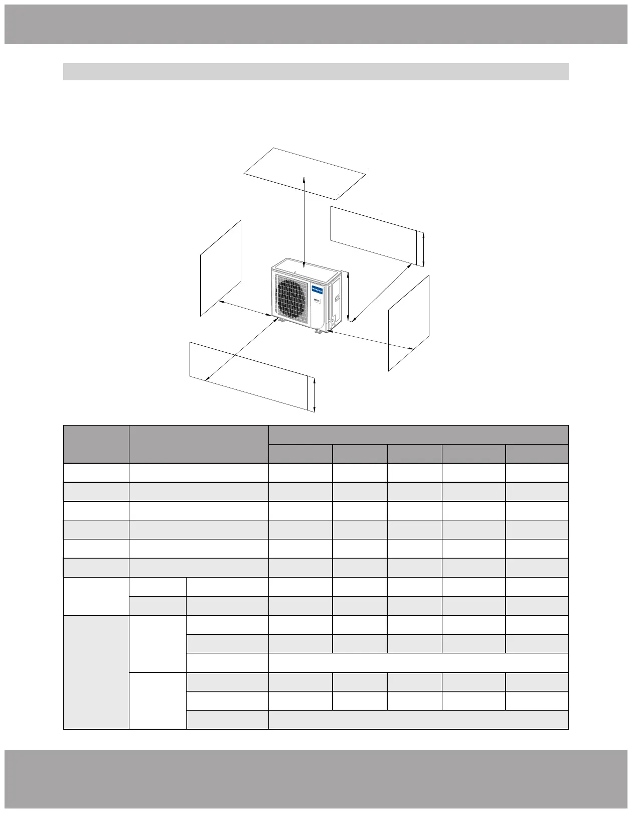 For best performance of the outdoor unit, make sure its installation space conforms to the following