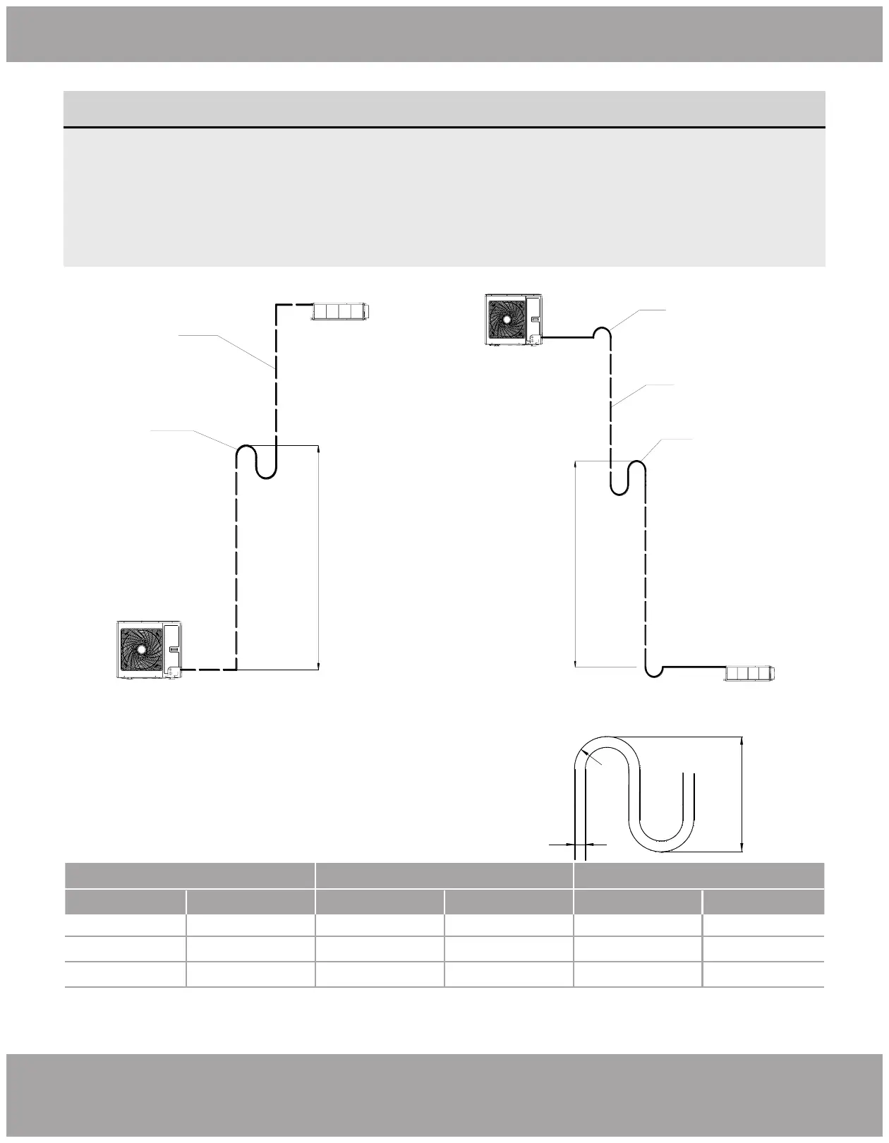 IF Outdoor unit is beneath the indoor unit, there is no need to add a non-return bend at the lowest or