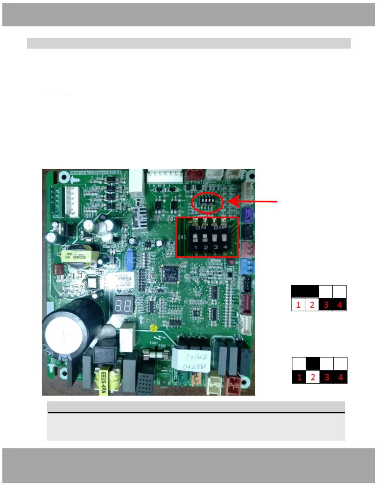2. Locate the capacity dip switch on the condenser main board. The capacity dip switch is circled on