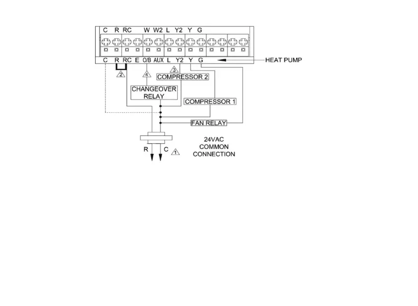 Fig. 18. Typical hookup of multi-stage heat pump with no auxiliary/backup heat (2H/2C heat pump).
