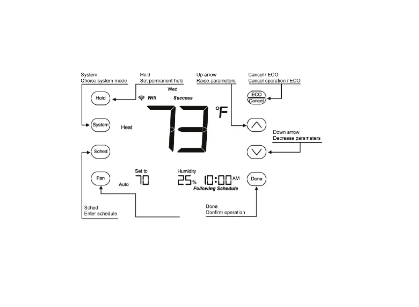 MrCool MST03 - Thermostat Keys; Operation
