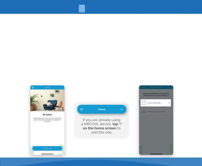 Open the MRCOOL Smart HVAC app, tap "Add Device" on the home screen, and
