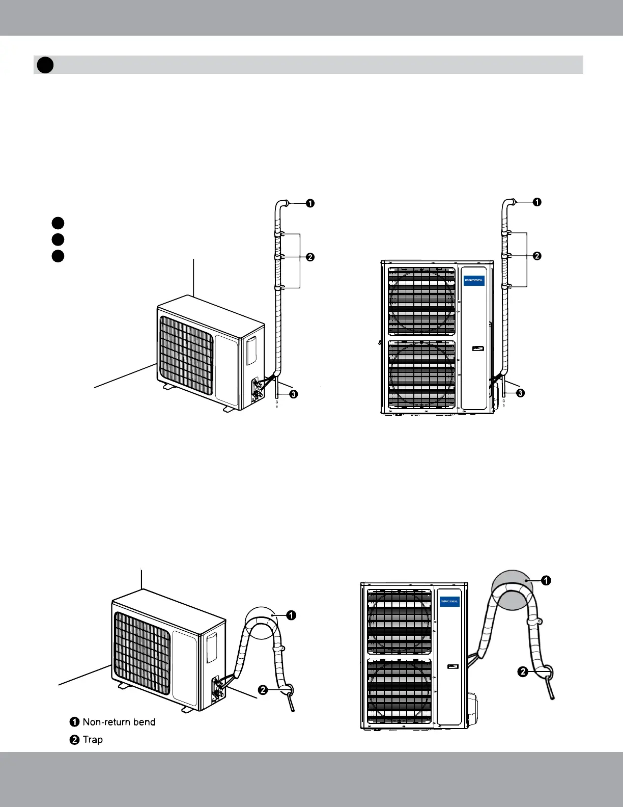 If the outdoor unit is located on a level higher than the indoor unit, arrange the condensate drain