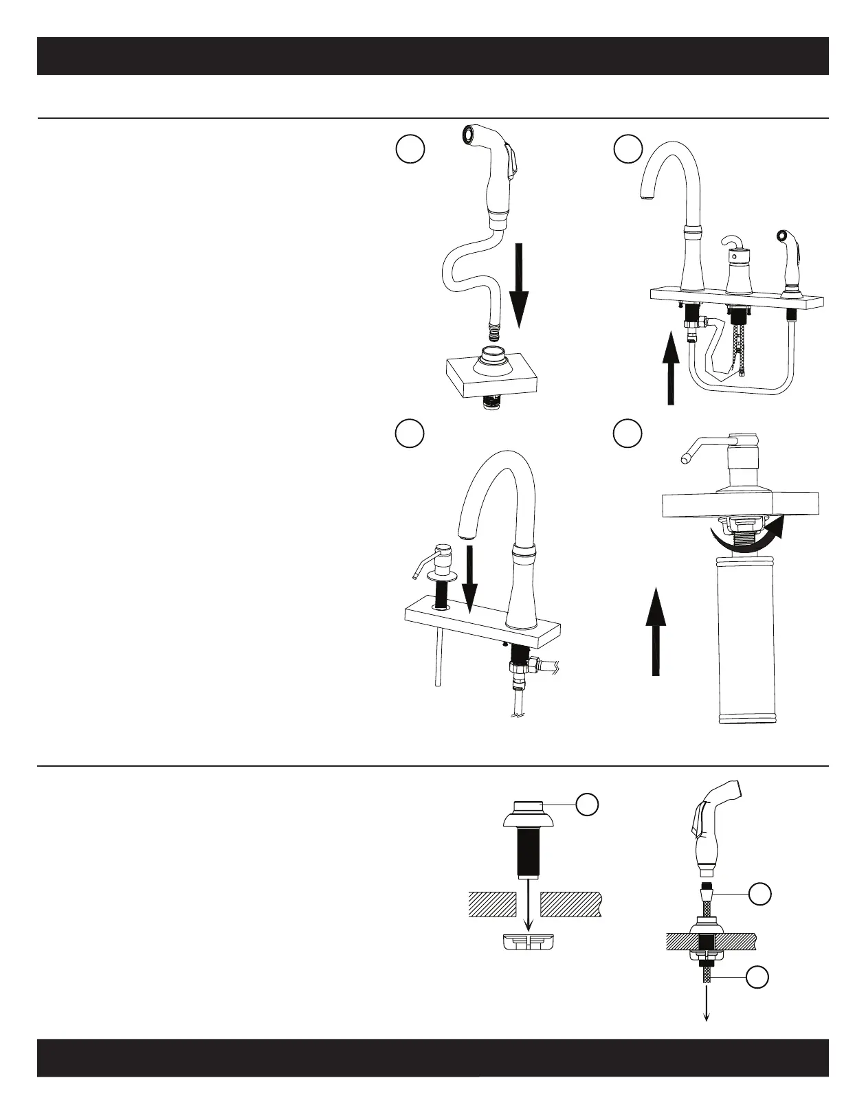 A. Insert spray hose assembly (1) to far right hole on the sink,