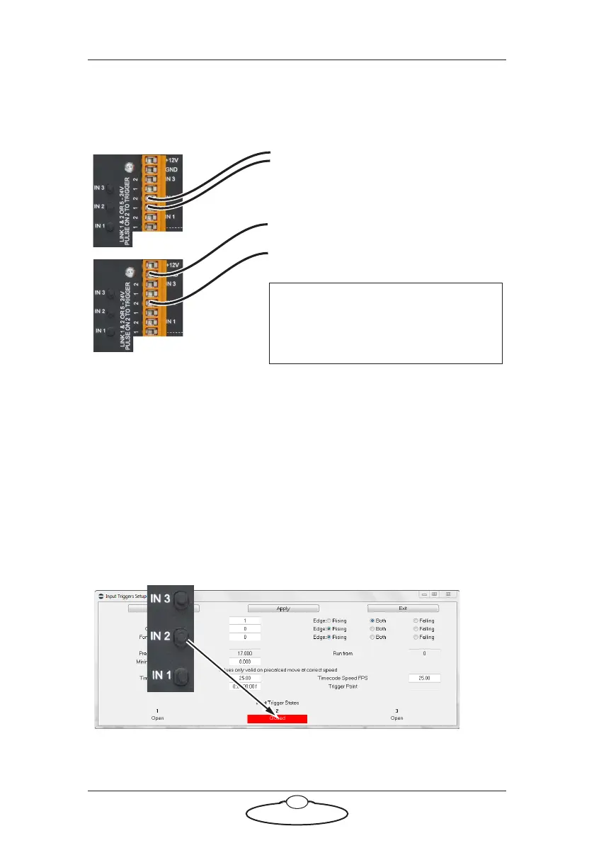 Trigger input 2 (IN 2) wires connected to