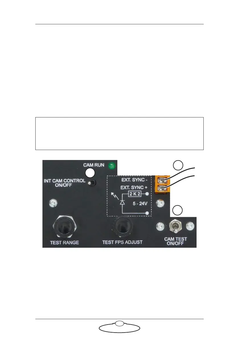 1. Attach the Sync wires from the camera to the pair of EXT. SYNC