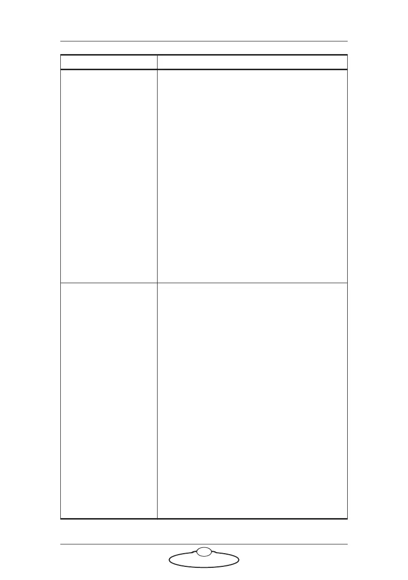 Symptoms Cause and/or action