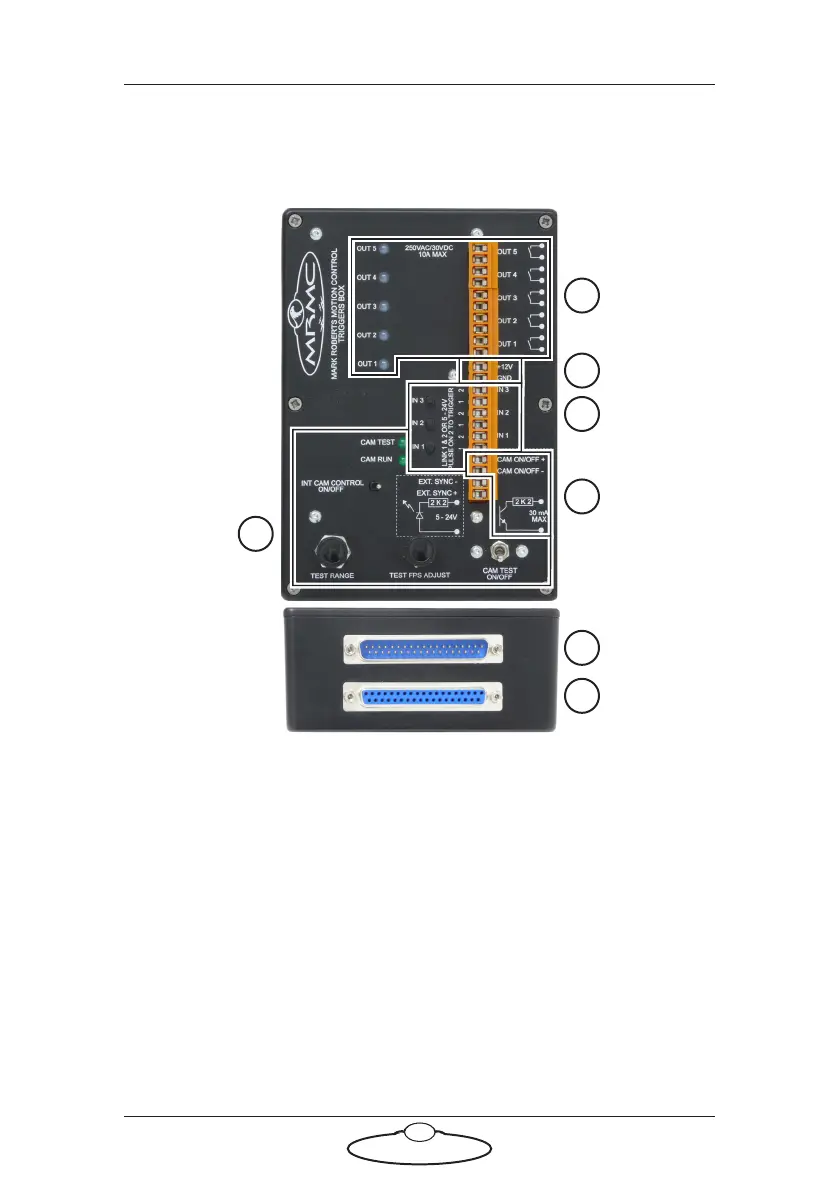 1. Five trigger outputs, numbered OUT 1 to OUT 5, and their
