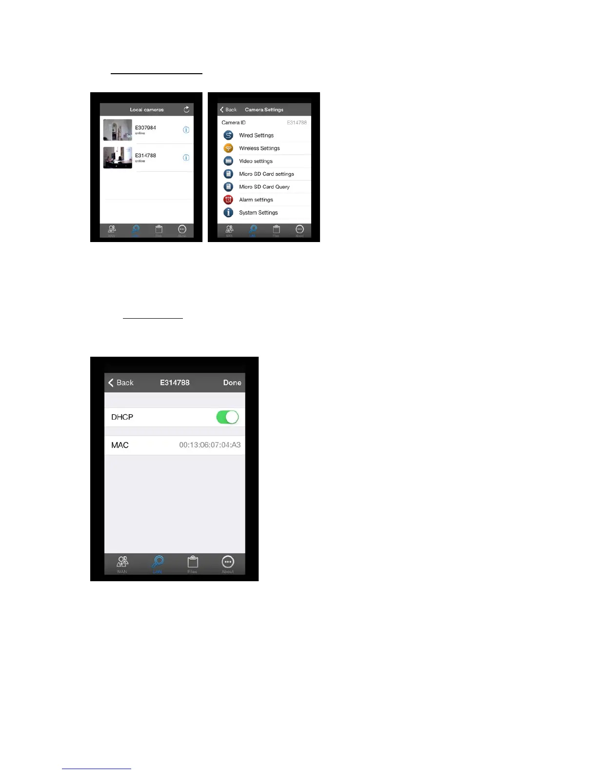 4.2. LAN Camera settings: