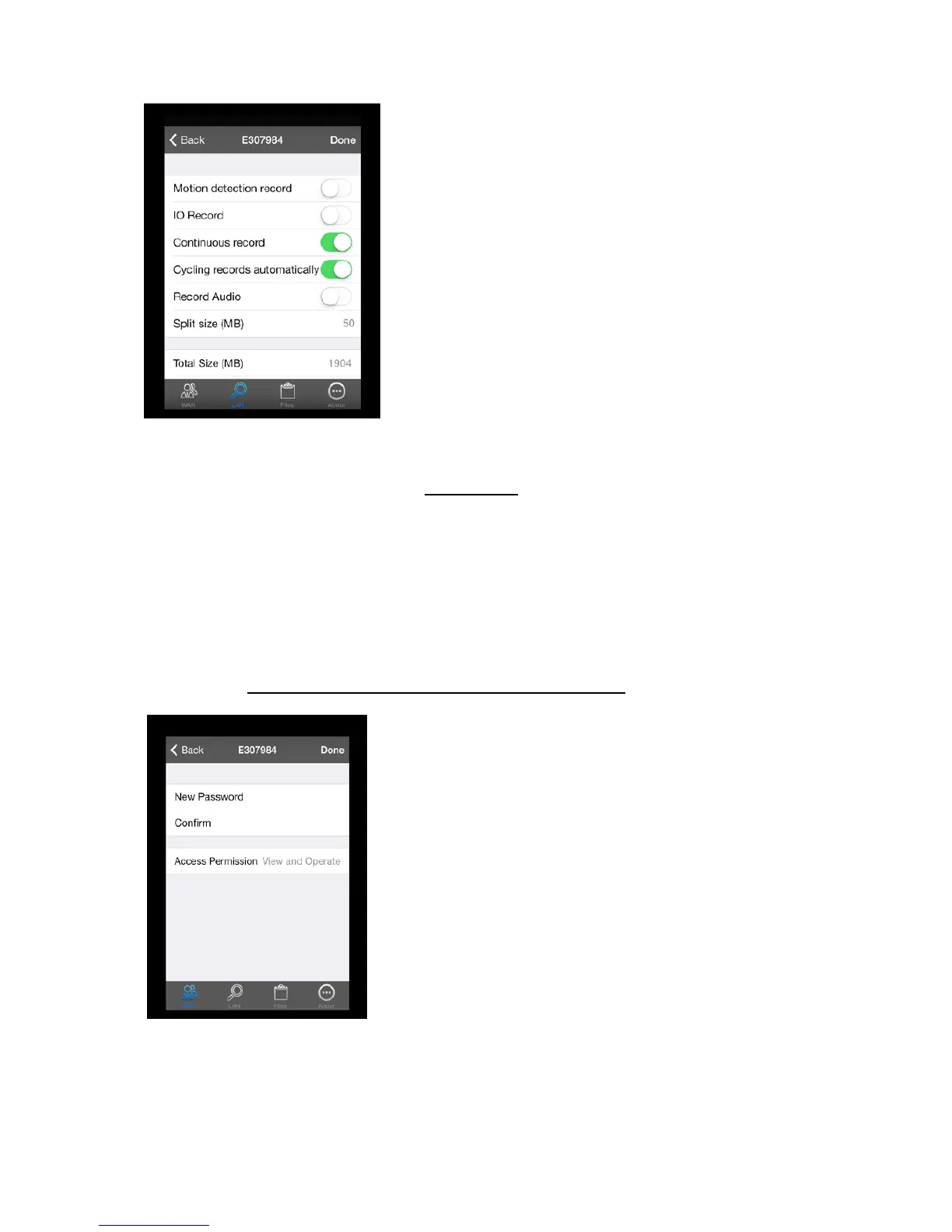 Operate). L’option « voir seulement » permet d’accéder à la caméra à l’aide du nouveau mot de