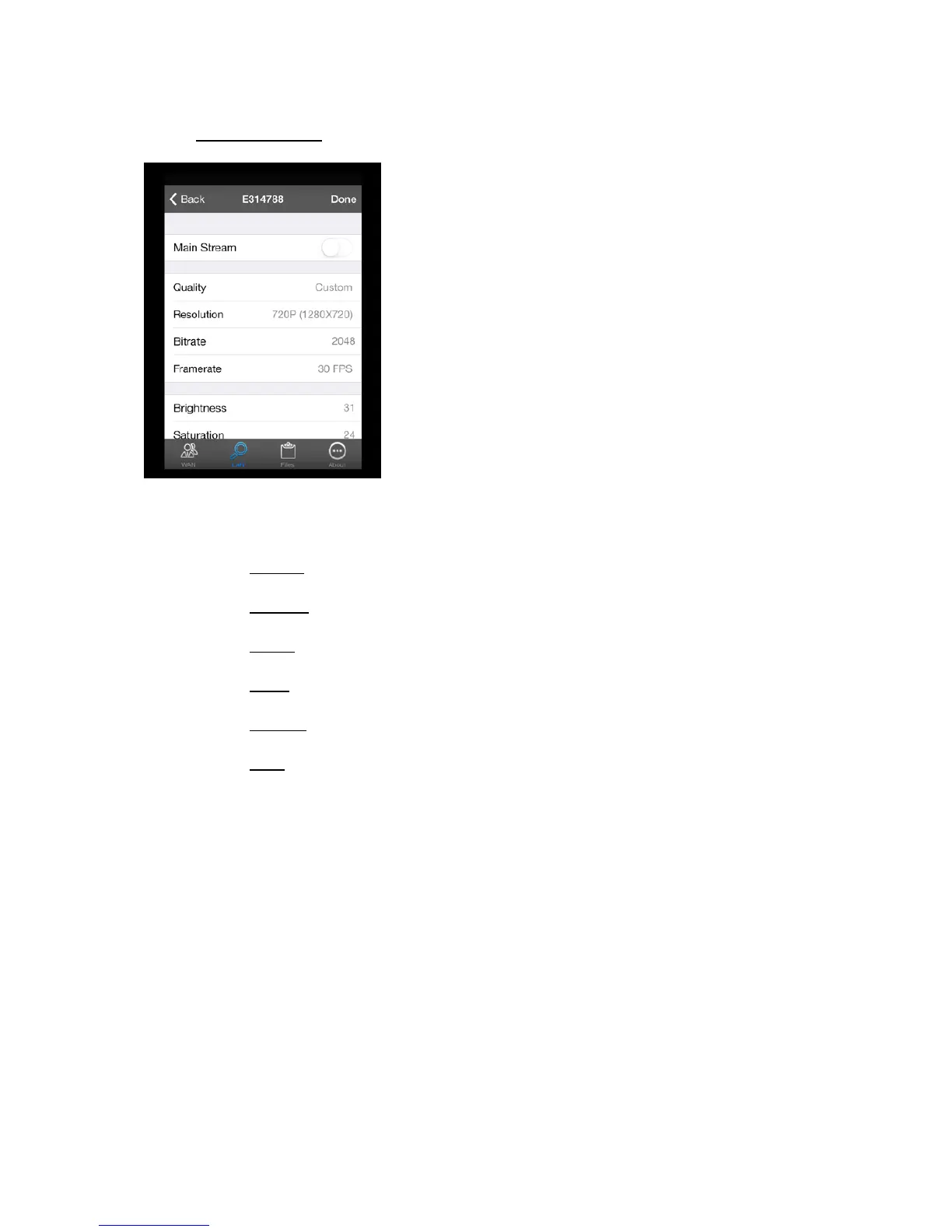 Quality: Hier ändern Sie die Qualität der Kamerabilder. Sie haben folgende