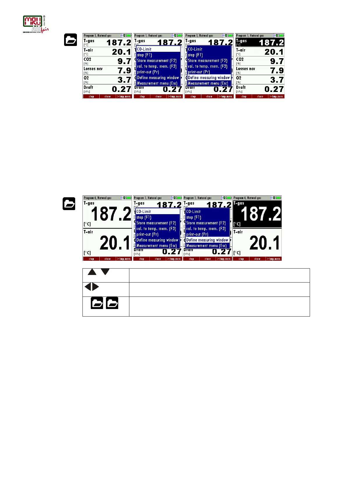 Start the measuring program – once you are inside the measuring window press the menu key.