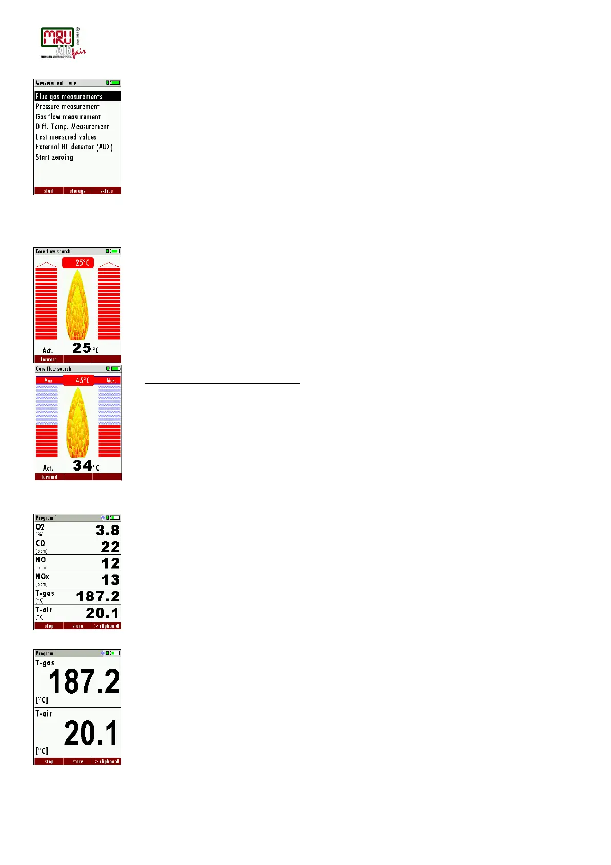In the measurement menu select “Flue gas measurements” then select one of the available